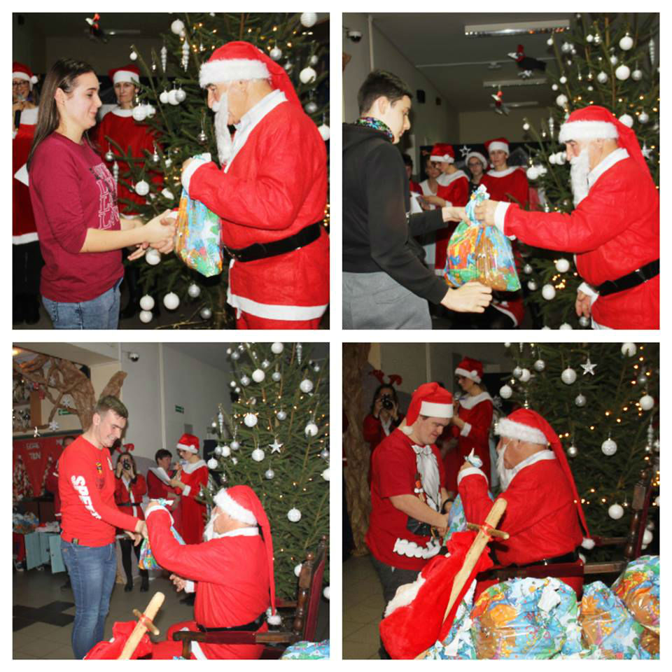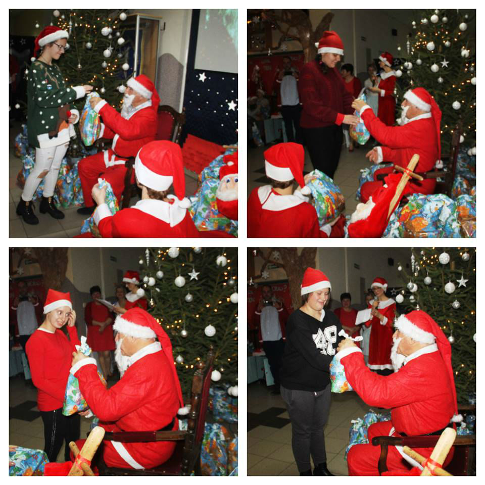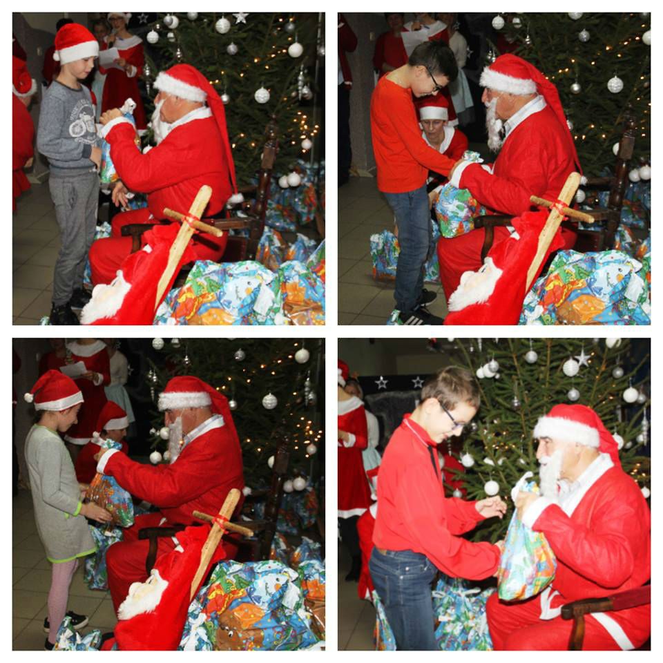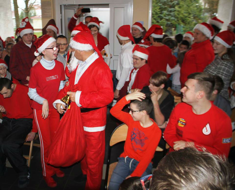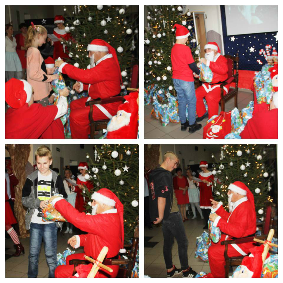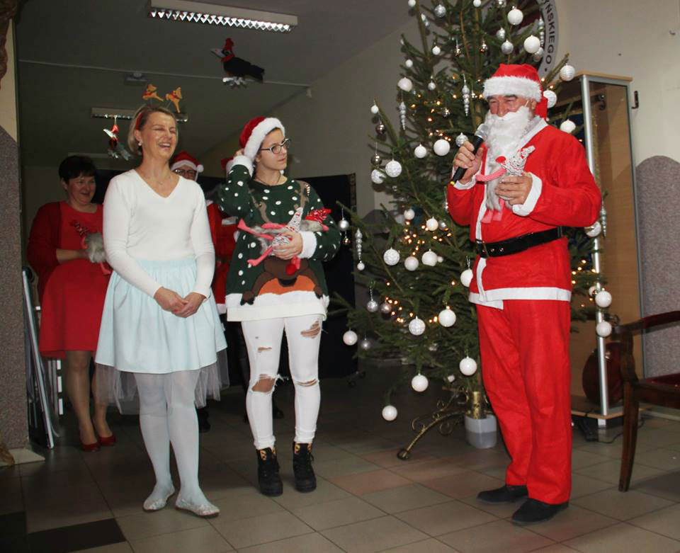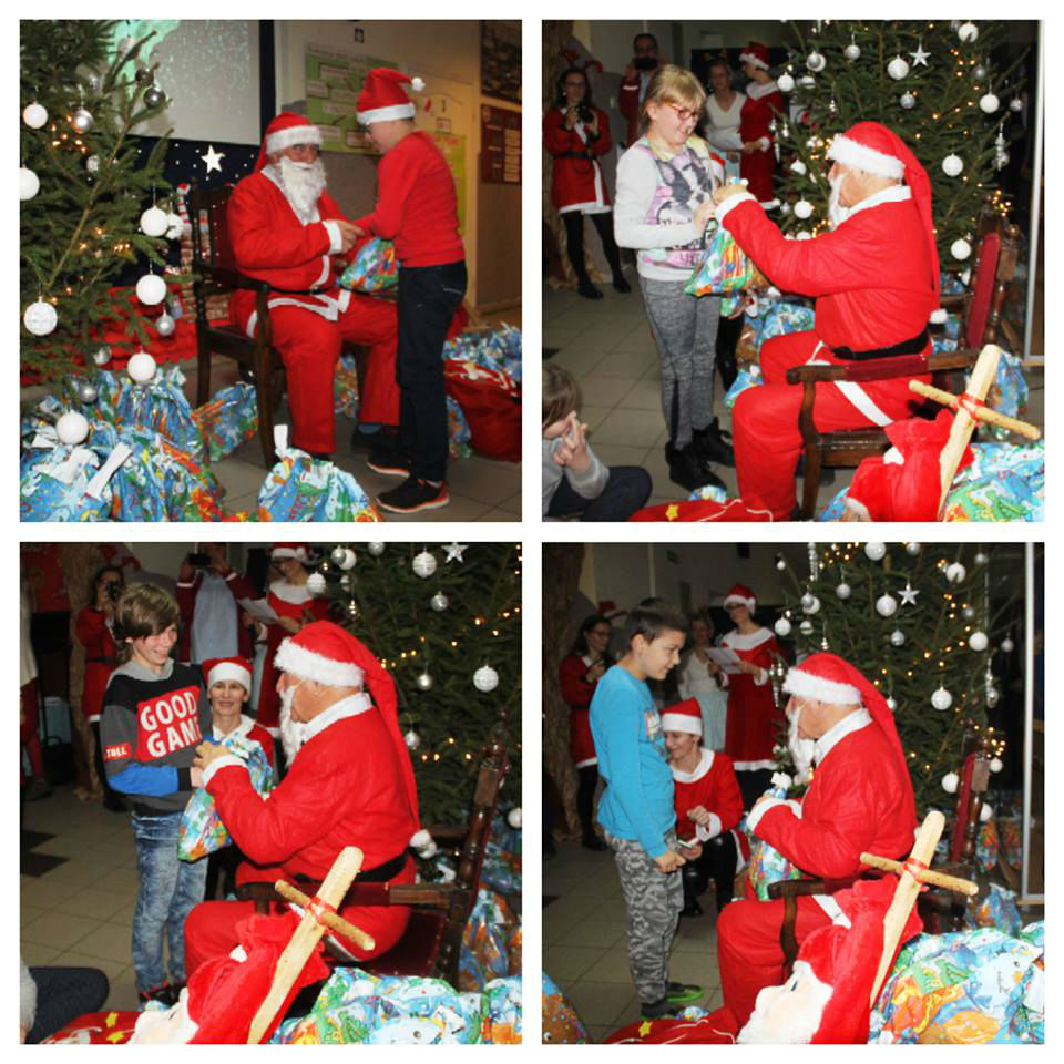Od samego rana w szkole panowało wielkie poruszenie. Na korytarzach i w klasach zrobiło się czerwono od mikołajkowych czapeczek. Mimo że co roku odwiedza nas Święty Mikołaj, to towarzyszące emocje są zawsze bardzo duże. Tegoroczny Mikołaj nas zaskoczył. Znalazł sposób, jak poradzić sobie z brakiem śniegu i przybył na niecodziennym, jak dla Mikołaja, pojeździe. Wielkie było zdziwienie uczniów, kiedy usłyszeli na szkolnym podwórku warkot motocykla i siedzącą na nim czerwoną postać. Po pełnym emocji przywitaniu nastąpił moment obdarowywania prezentami, które większość uczniów przyjmowała z wypiekami na twarzy i nieskrywaną radością. Co niektórzy obiecali, że będą już grzeczni – Mikołaj ma wielką moc. Grono nauczycielskie okazało zadowolenie z przybycia Mikołaja, śpiewając w wielogłosie piosenkę „Kochany Panie Mikołaju".