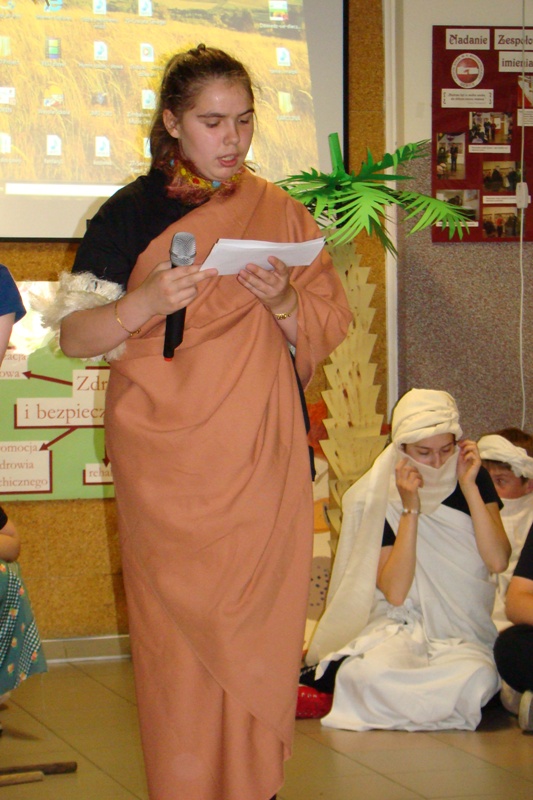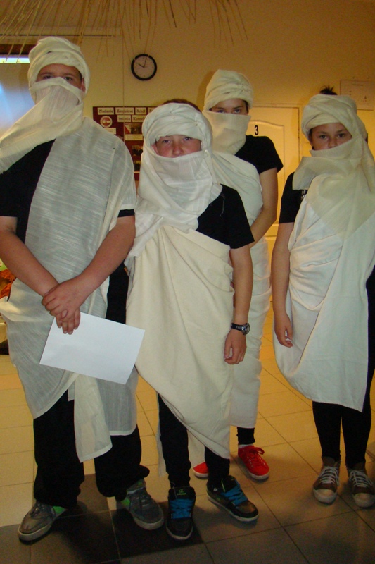 Uczniowie naszej szkoły zaprezentowali dwie grupy etniczne zamieszkujące tereny Afryki - Masajów i Beduinów. Takie nazwy przyjęły także dwie grupy uczniów, które brały udział w konkursie wiedzy o Afryce. Zmaganiom uczestników przyglądało się bacznie jury, które wyłoniło zwycięzców.