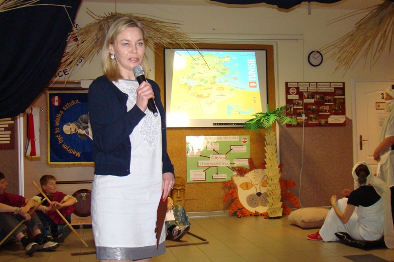 Gościem specjalnym uroczystości była pani dyrektor Alicja Kasperczyk, której pasją są podróże. W jedną z nich, po krajach Afryki Północnej zabrała naszych uczniów. Dzięki jej wystąpieniu uczniowie mogli zgłębić tajniki kultury i religii prezentowanych krajów, obejrzeć barwne fotografie, przedstawiające piękne i niepowtarzalne krajobrazy afrykańskich miast.