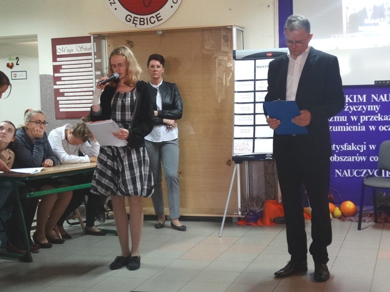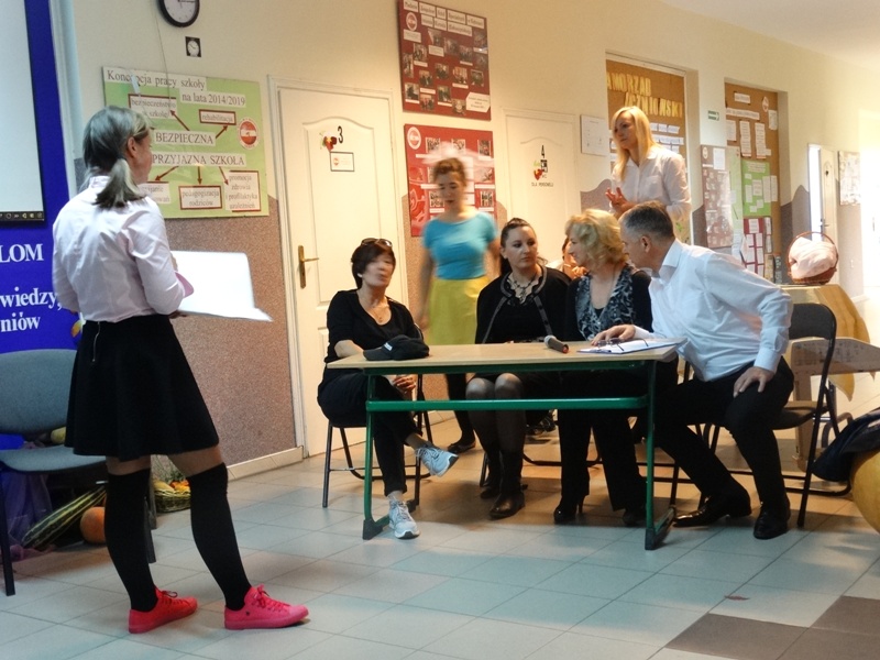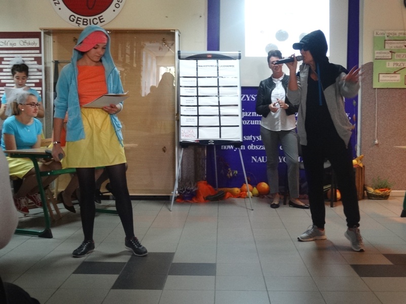 Nauczyciele kontra uczniowie to walka, która rozegrała się na szkolnym holu, a złożona była z pięciu konkurencji – bitew: rapowania, 7 fundamentalnych pytań o szkole, recytacji wierszy, tańca oraz piosenki „Laleczka” w formie karaoke, odśpiewanej wspólnie przez przedstawicieli obu zespołów. Drużynę nauczycieli reprezentowali: pan Piotr Swadzyniak, panie: Izabela Strawa, Edyta Szostak oraz Joanna Bryszewska. Uczniów: Dominika Brączkowska, Paulina Wylegała, Krystyna Kogut oraz Julia Wylegała. W komisji zasiadły panie: Grażyna Koźma, Bogusława Spicker, Hanna Szermer oraz Monika Dziubała . Wyczerpująca i zarazem ekscytująca walka zakończyła się zwycięstwem uczniów, którzy prowadzili aż dziesięcioma punktami. Jednak w ostatecznej dogrywce niebiański sopran naszej pani Izabeli doprowadził do zadowalającego wszystkich remisu. Cenną nagrodą dla wszystkich okazały się wspólne tańce przy muzyce wieńczące Dzień Edukacji Narodowej w naszej szkole.
