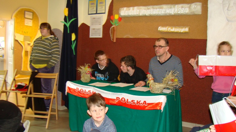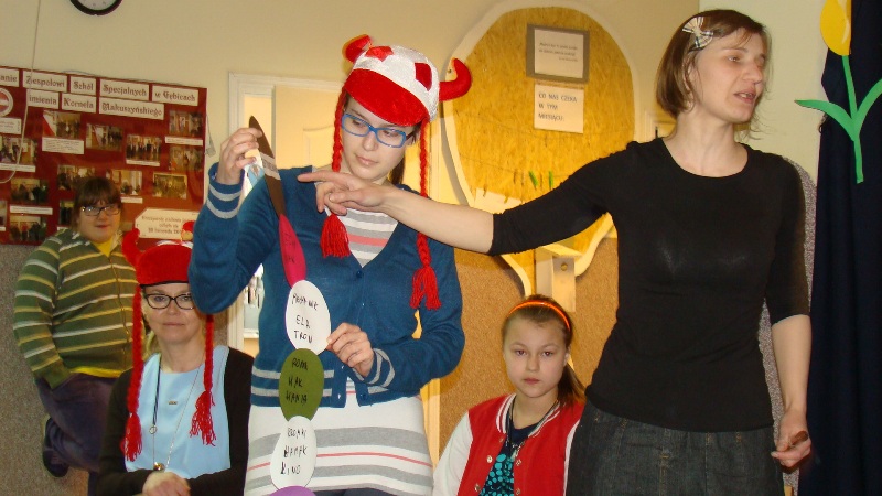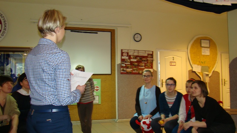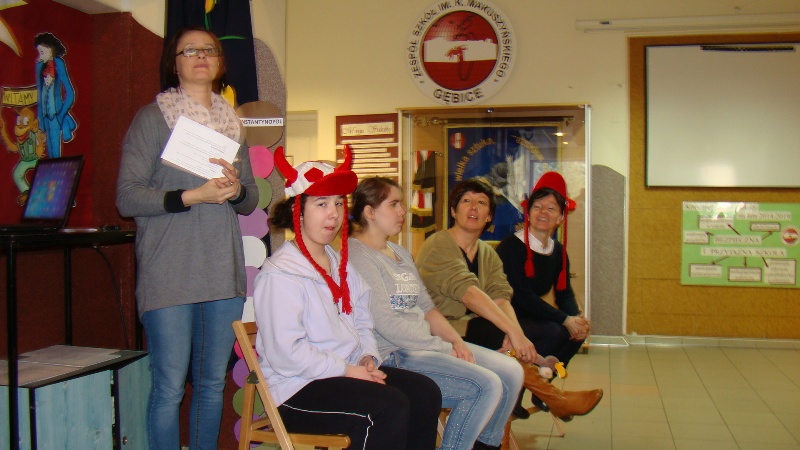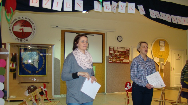 Aby przypomnieć o pięknie ojczystego języka na samym początku wyłoniono dwa zespoły, w skład których wchodzili nauczyciele i uczniowie naszej szkoły. Liderem jednej grupy była pani dyrektor szkoły, drugim zaś pani wicedyrektor. Oba zespoły łamały sobie język na skomplikowanych zdaniach. Zawodnicy układali wyrazy z jednego najdłuższego, odgadywali do kogo należy nagrany głos, próbowali odgadnąć tytuły polskich filmów po wysłuchaniu melodii, pochodzących ze znanych, polskich seriali. Zastanawiali się również nad poprawnością naszego codziennego języka. Nie można przecież „cofnąć się do przodu”, „zjeść pomarańcza” czy „spaść w dół”- a takie właśnie pomyłki zdarzają się w naszym języku mówionym.