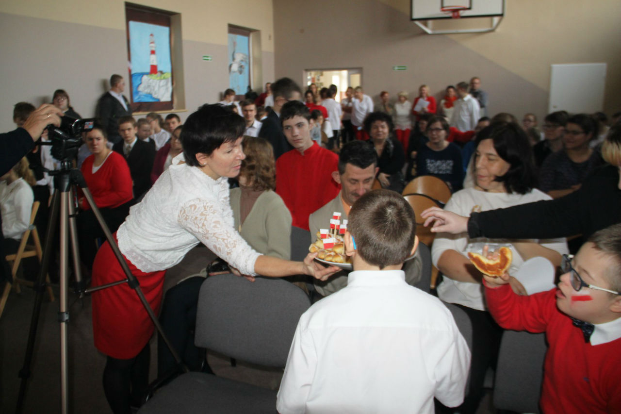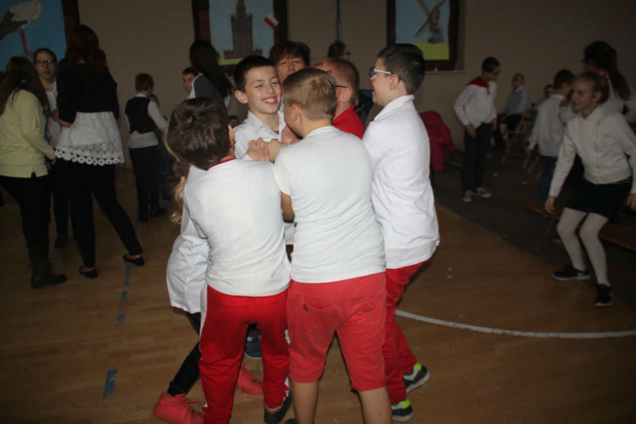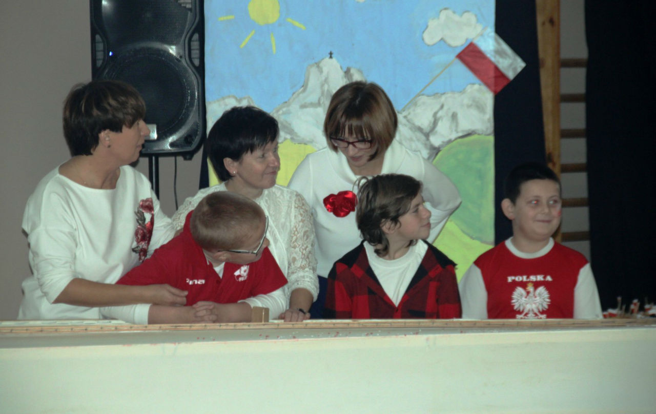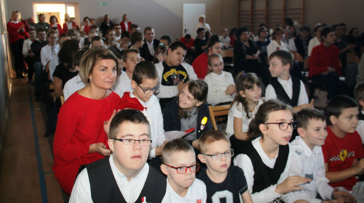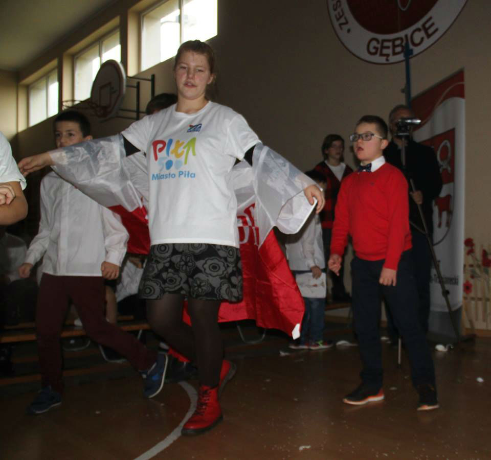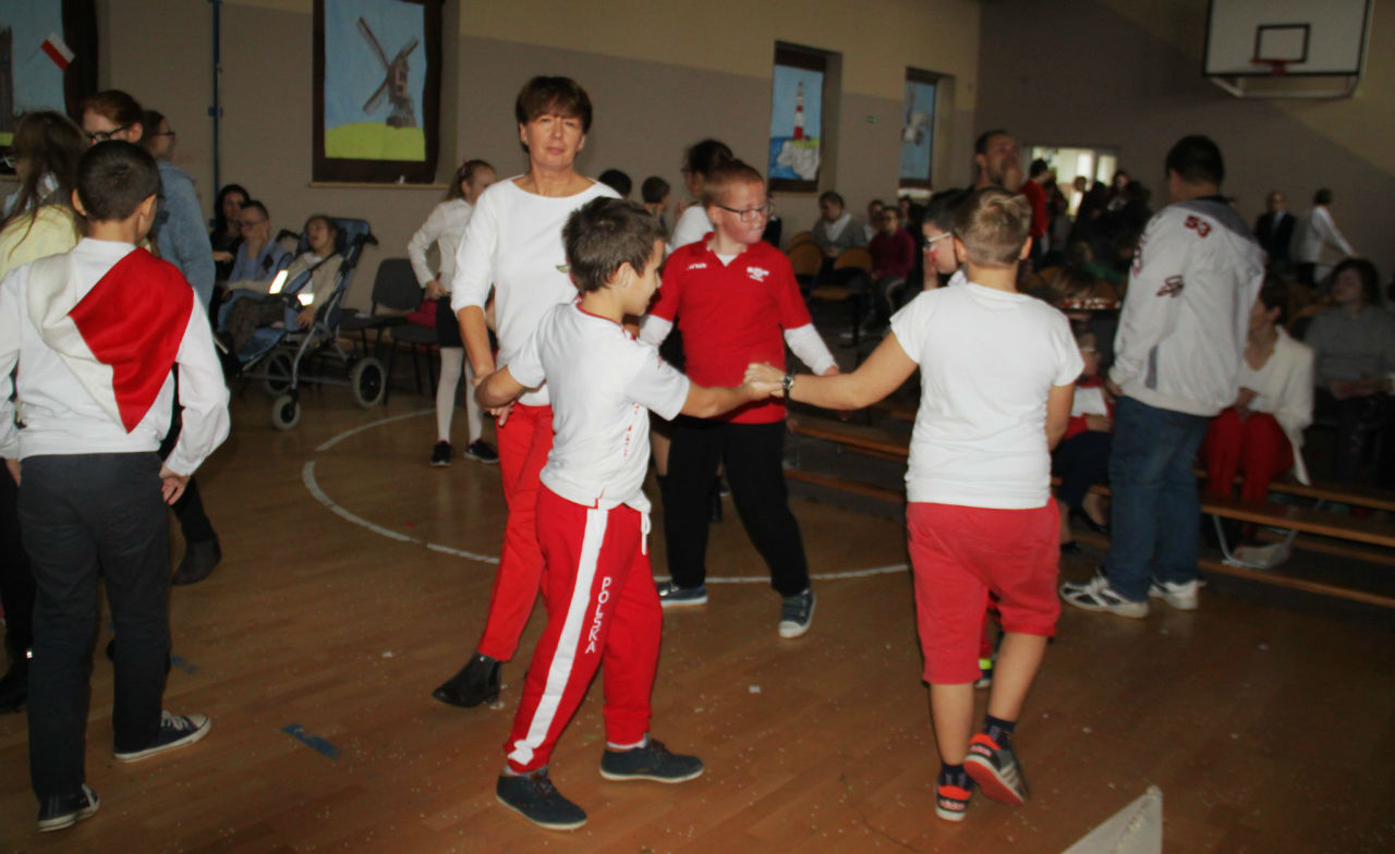 W piątek 16. 11.2018r. na sali gimnastycznej zebrała się wraz z zaproszonymi gośćmi - przedstawicielami WTZ z Trzcianki i Gębic, wspólnota szkolna, złożona z uczniów, nauczycieli oraz rodziców. Po uroczystym wprowadzeniu sztandaru i odśpiewaniu czterech zwrotek Mazurka Dąbrowskiego głos zabrała wicedyrektor szkoły pani Izabela Rybarczyk i powitała przybyłych gości. Następnie przypomnieliśmy wszystkie akcje i aktywności szkolne związane z rocznicą odzyskania niepodległości.