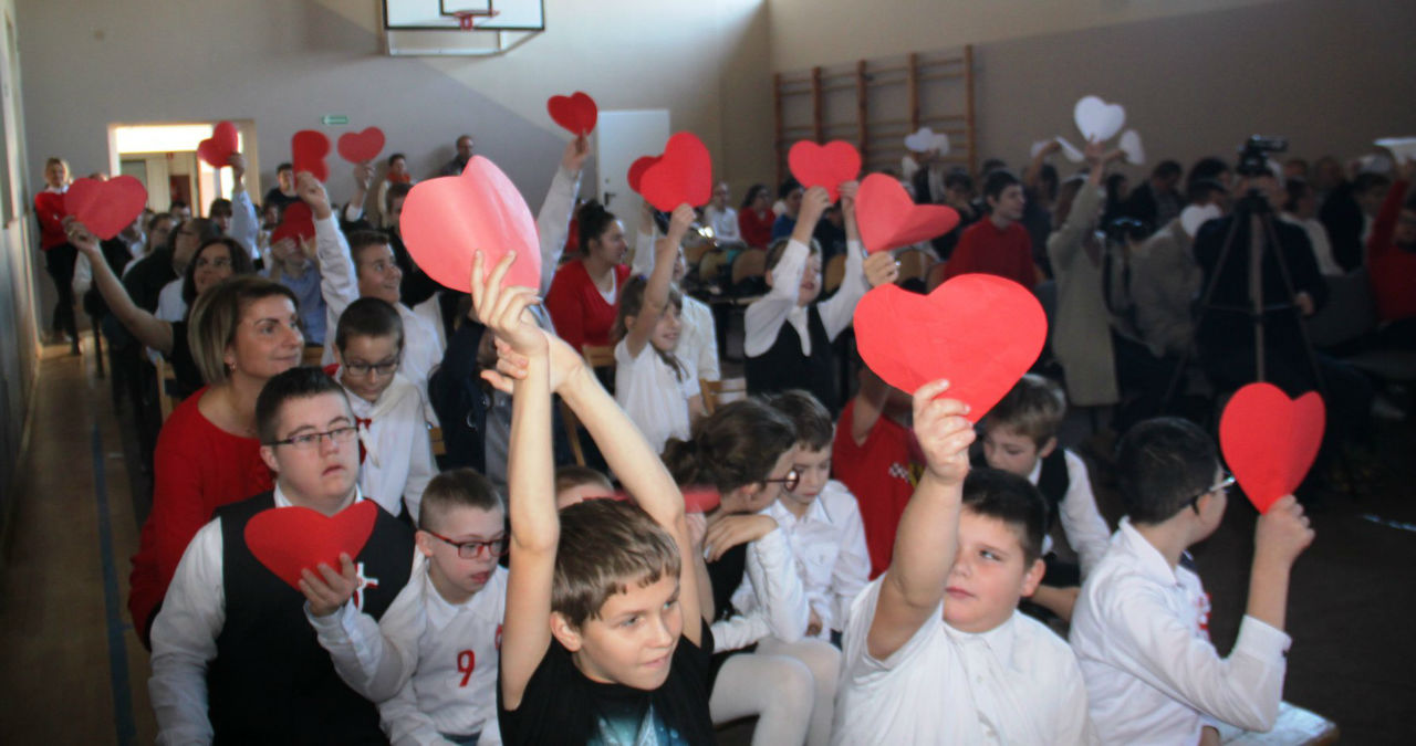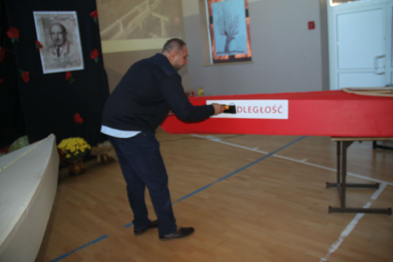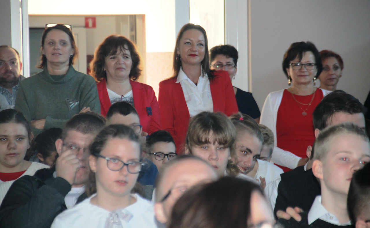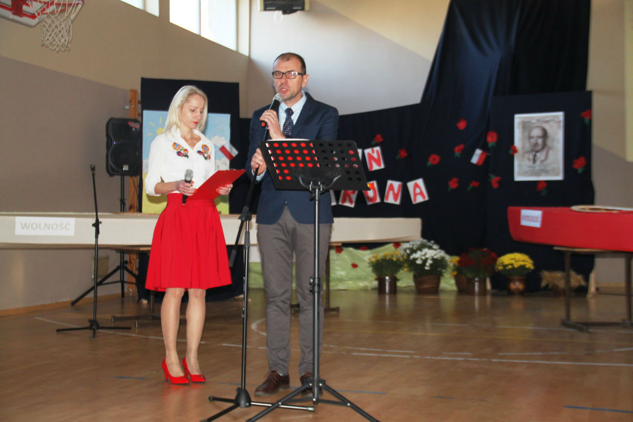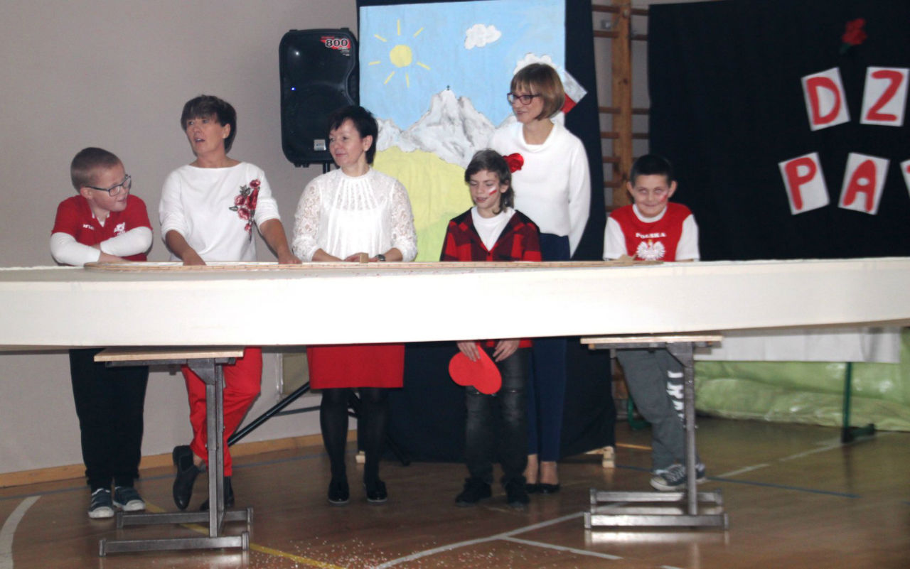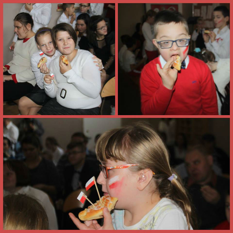 W piątek 16. 11.2018r. na sali gimnastycznej zebrała się wraz z zaproszonymi gośćmi - przedstawicielami WTZ z Trzcianki i Gębic, wspólnota szkolna, złożona z uczniów, nauczycieli oraz rodziców. Po uroczystym wprowadzeniu sztandaru i odśpiewaniu czterech zwrotek Mazurka Dąbrowskiego głos zabrała wicedyrektor szkoły pani Izabela Rybarczyk i powitała przybyłych gości. Następnie przypomnieliśmy wszystkie akcje i aktywności szkolne związane z rocznicą odzyskania niepodległości.