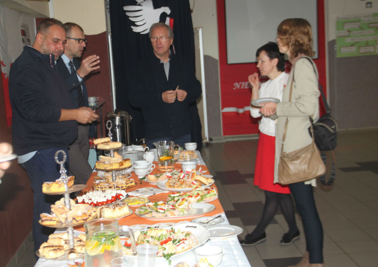 Po przerwie wypełnionej kuluarowymi rozmowami i konsumpcją pyszności, przygotowanych na zajęciach przez uczniów wraz z nauczycielami, cała brać szkolna bawiła się i tańczyła w rytm piosenek granych przez zespół Przemka Mazurka. W repertuarze grupy były zarówno piosenki o charakterze morskim, jak i te przeznaczone dla najmłodszych, autorstwa lidera zespołu. Późnym popołudniem mocno już zmęczeni, ale najedzeni i wybawieni jechaliśmy do domów z myślą, że kolejny Dzień Patrona już tylko za rok.