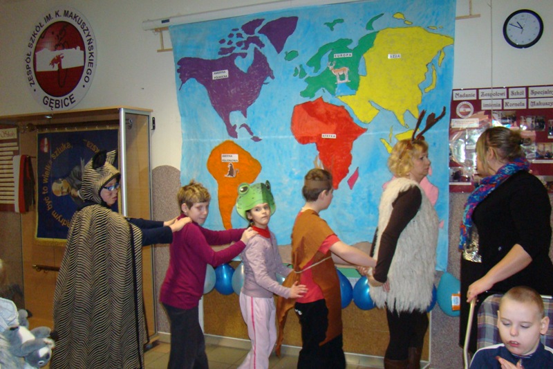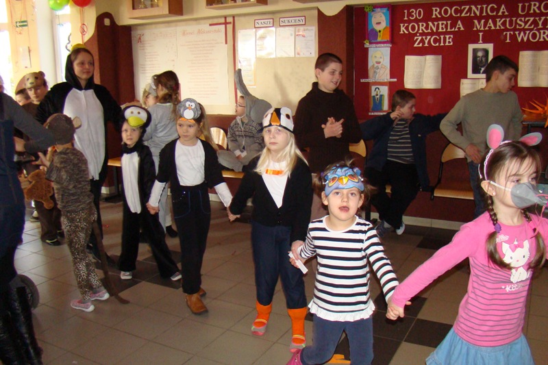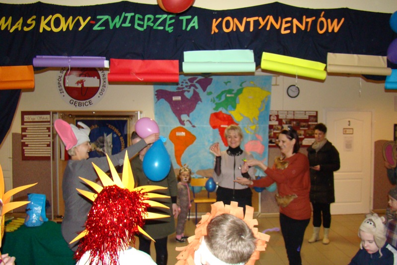 Karnawał to doskonały czas na organizowanie zabaw i balów nie tylko dla dorosłych, ale również i dla dzieci. W naszej szkole 18 lutego br. odbył się Bal Maskowy pod hasłem: Zwierzęta kontynentów. Ideą balu była szeroko rozumiana integracja. Jego uczestnikami byli uczniowie klas I-III Szkoły Podstawowej w Gębicach, przedszkolaki z Publicznego Przedszkola w Gębicach oraz dzieci i młodzież z Zespołu Szkół Specjalnych w Gębicach. Tego dnia nie było jednak ważne, kto przyszedł z jakiej szkoły ? najważniejsze było to, że mogliśmy wspólnie bawić się i stworzyć miłą oraz przyjazną atmosferę.