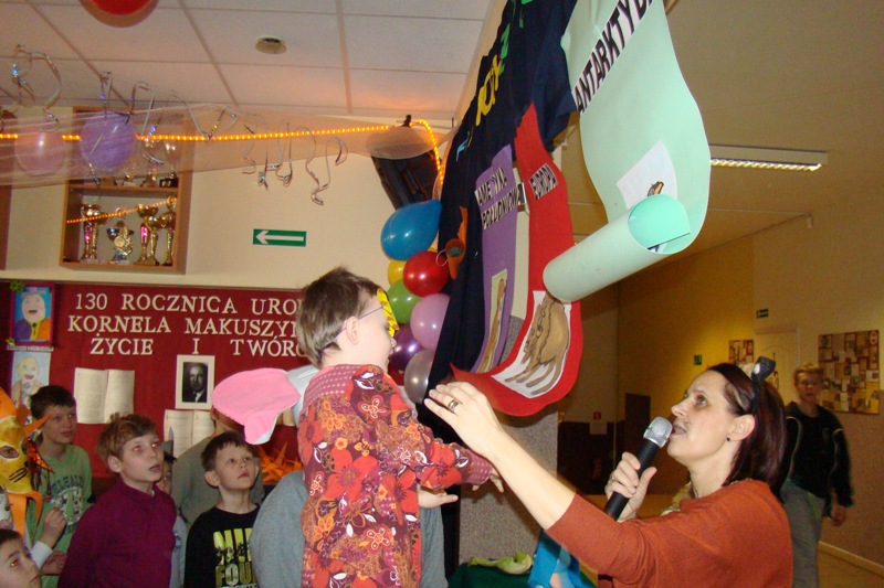 Tego dnia hol szkoły, za sprawą organizatorów, przemienił się w istną dżunglę ? liany z serpentyn, świetlne węże, balony, kwiaty zapraszały gości do królestwa zwierząt.