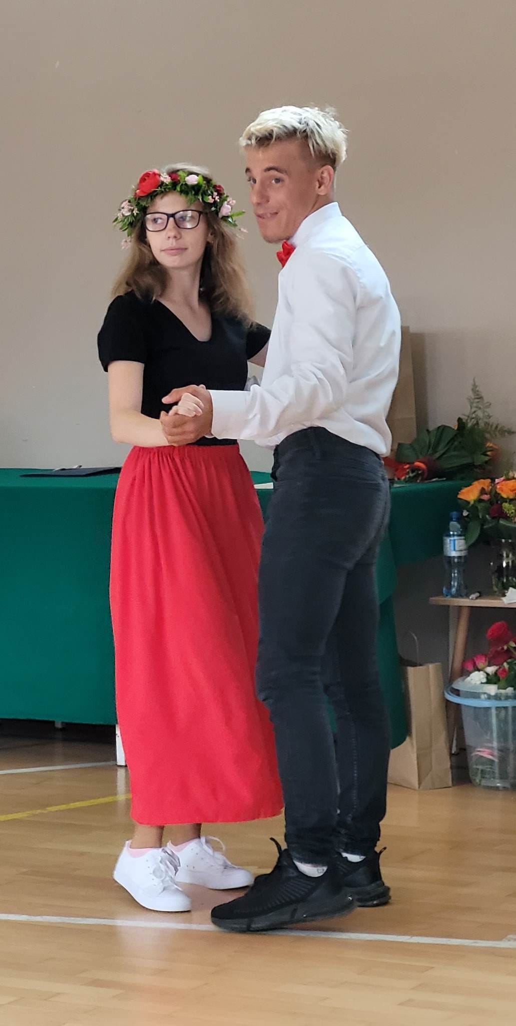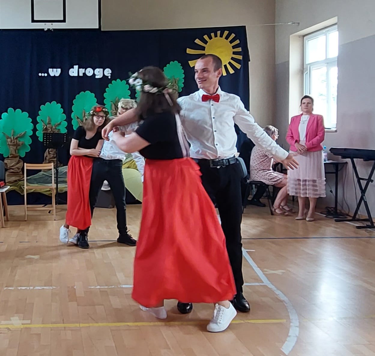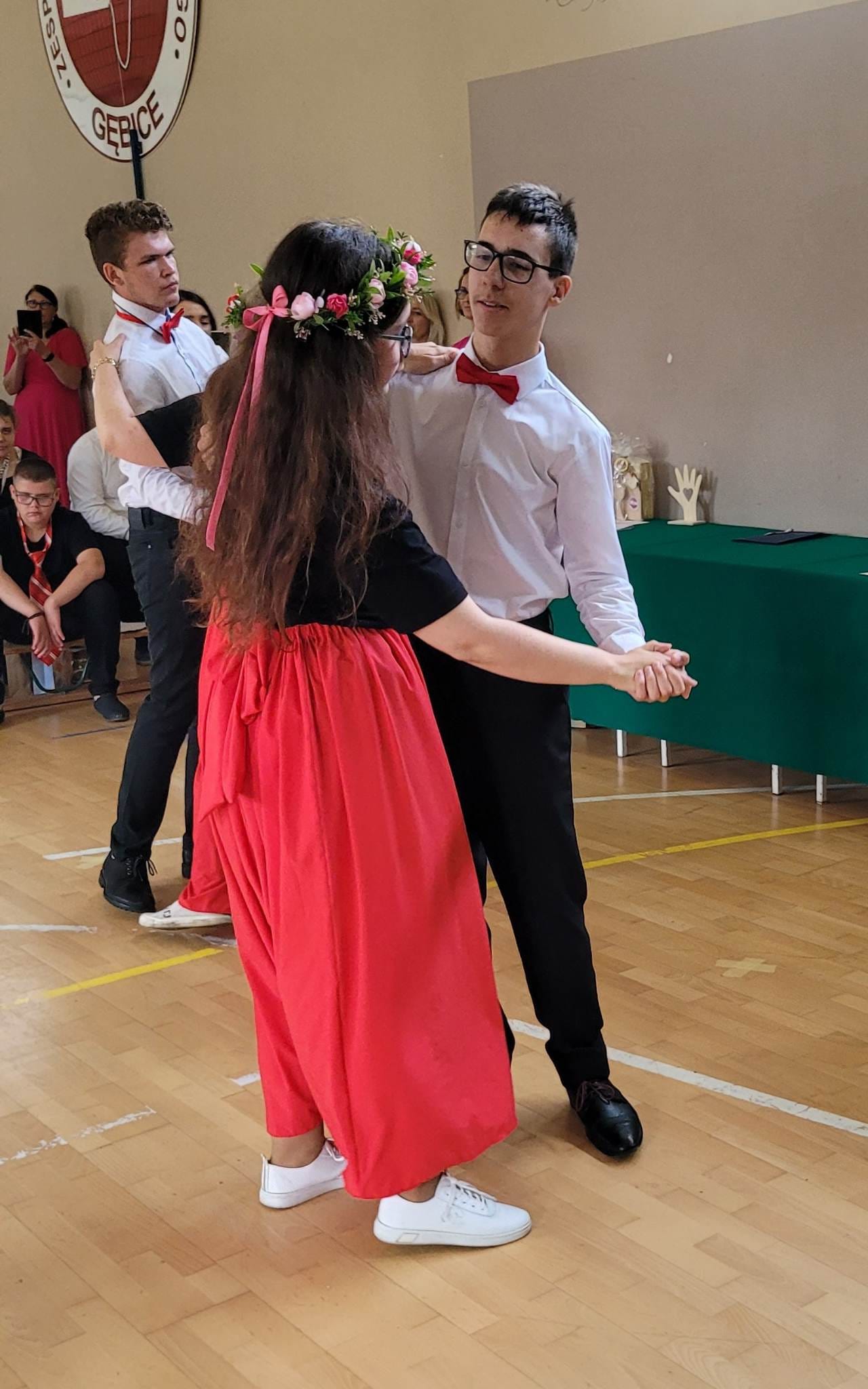 Uczniowie najstarszych klas szkoły podziękowali nauczycielom i swoim rodzicom wierszem, piosenką oraz tańcem. Choreografia walca, ujmująca muzyka i przepiękny taniec naszych podopiecznych wzbudziły nostalgię, poruszyły duszę i wyłuskały subtelną łzę.