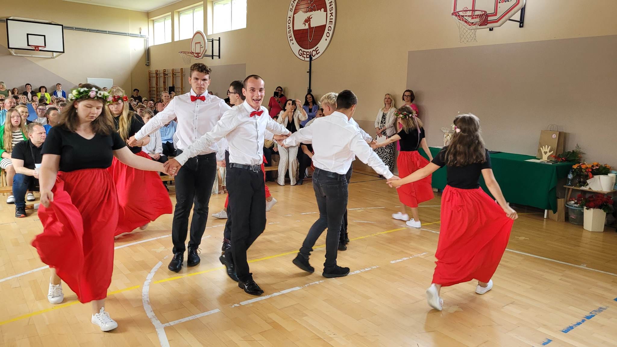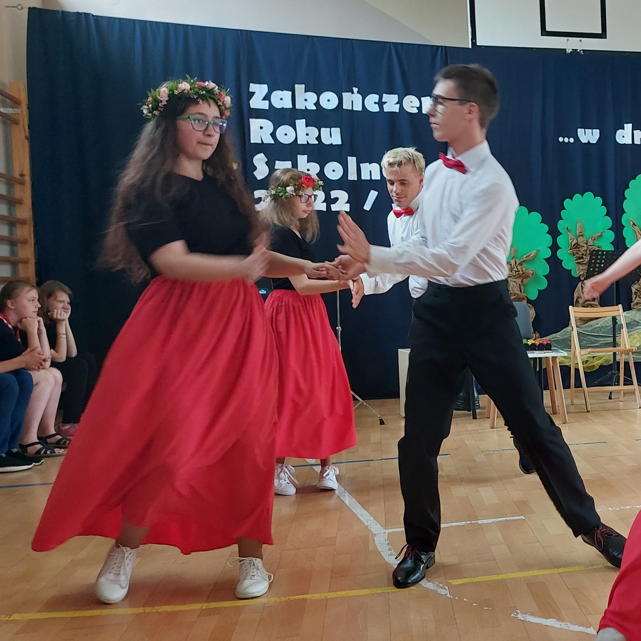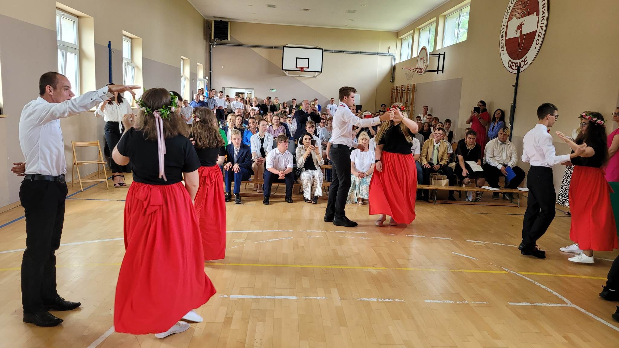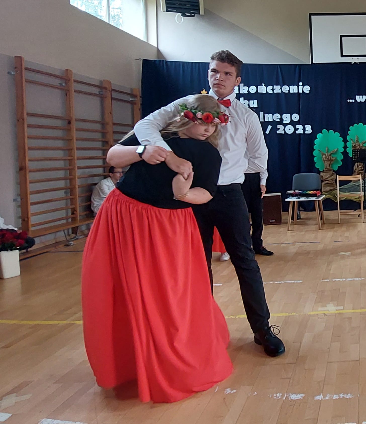 Uczniowie najstarszych klas szkoły podziękowali nauczycielom i swoim rodzicom wierszem, piosenką oraz tańcem. Choreografia walca, ujmująca muzyka i przepiękny taniec naszych podopiecznych wzbudziły nostalgię, poruszyły duszę i wyłuskały subtelną łzę.