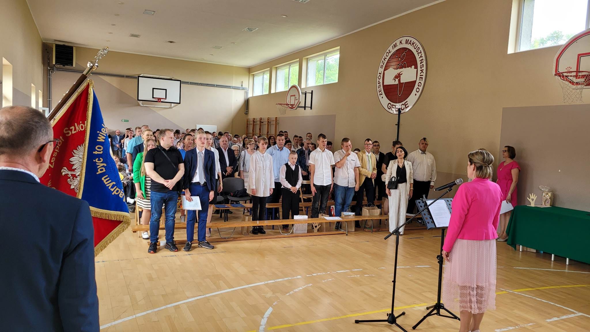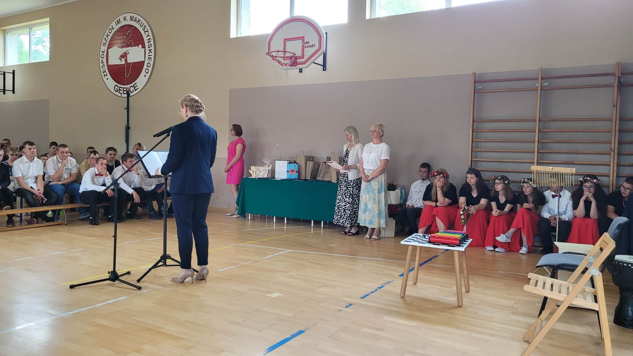 Uroczystość rozpoczęła pani dyrektor Alicja Kasperczak przemówieniem, które przypomniało nam jak wspaniały był ten miniony rok szkolny. Zwiedziliśmy ciekawe miejsca, w bliższych i dalszych okolicach, przeżyliśmy interesujące spotkania, radosne imprezy integracyjne, ekscytujące konkursy i zawody sportowe. Był, to czas nauki i rozwoju w innych niż dotychczas okolicznościach: kino sferyczne, żywa lekcja historii, wycieczki edukacyjne, zielona szkoła i wiele innych.