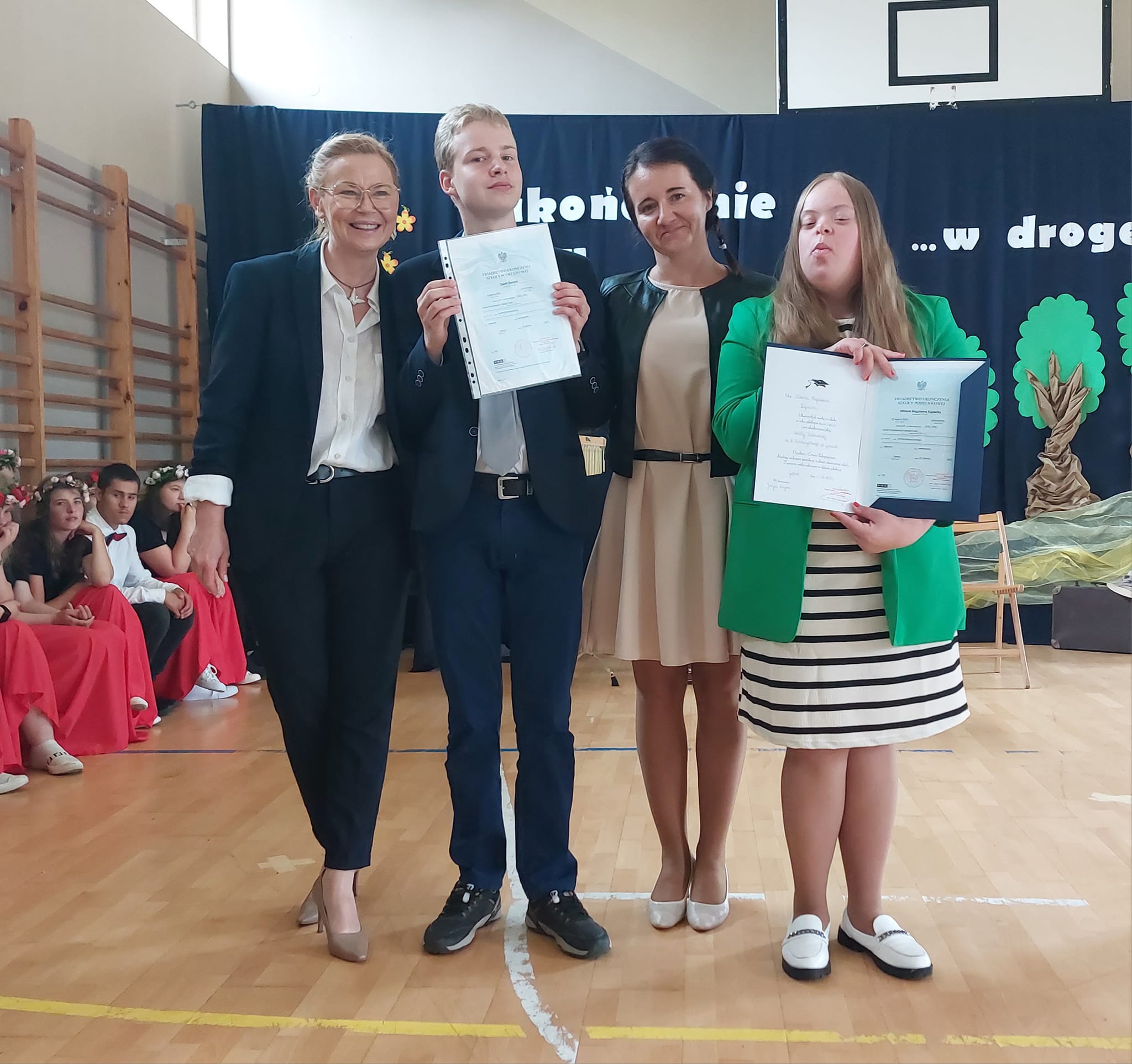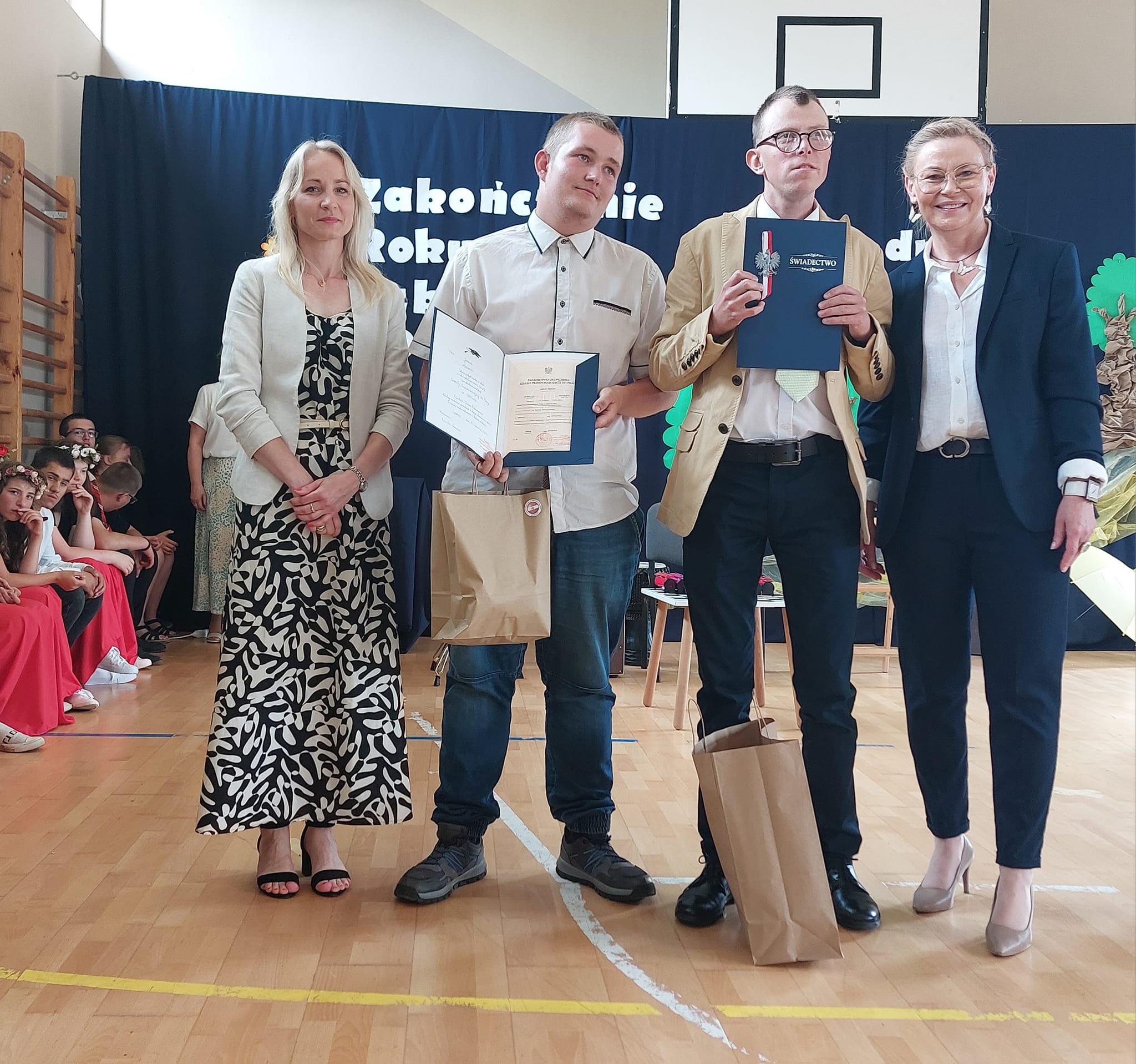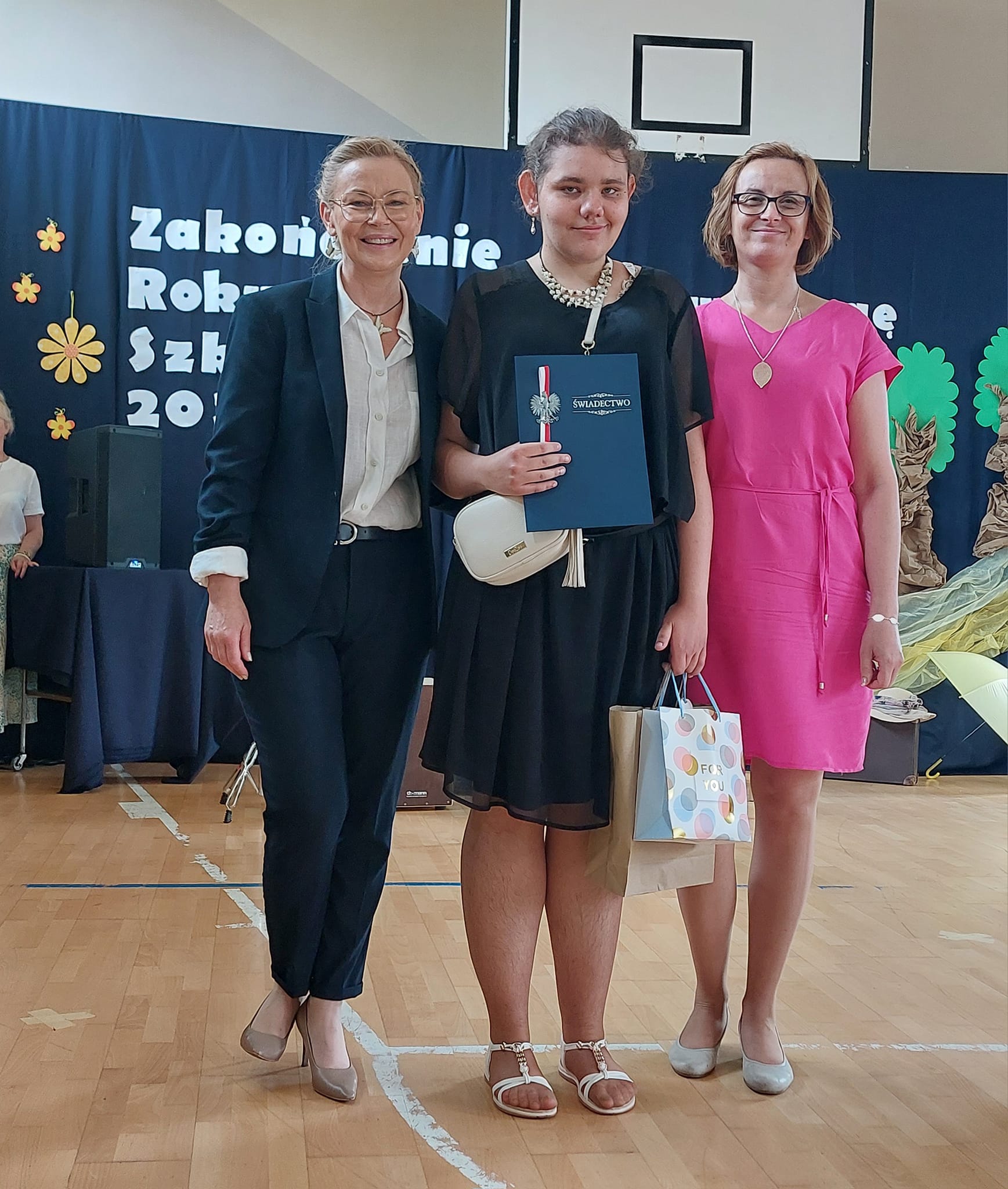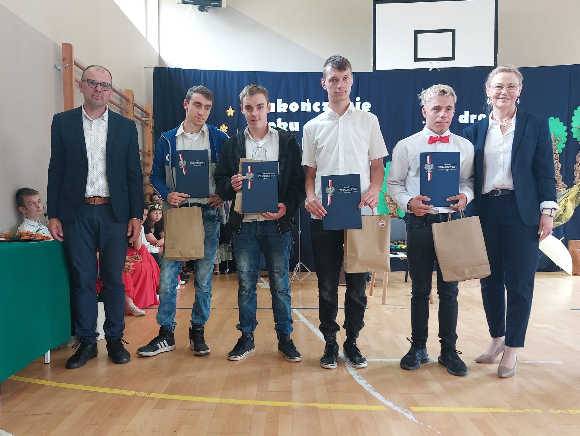 Niektórzy uczniowie po raz ostatni otrzymali świadectwo z rąk pani dyrektor i wychowawcy w murach naszej szkoły. Był to moment wyjątkowy i wzruszający, uświadamiający nam jak potężna więź międzyludzka kształtuję się między uczniem i nauczycielem. Ze strony młodego człowieka wdzięczność, szacunek i uznanie, natomiast ze strony nauczyciela duma, radość i satysfakcja z sukcesów wychowanka.