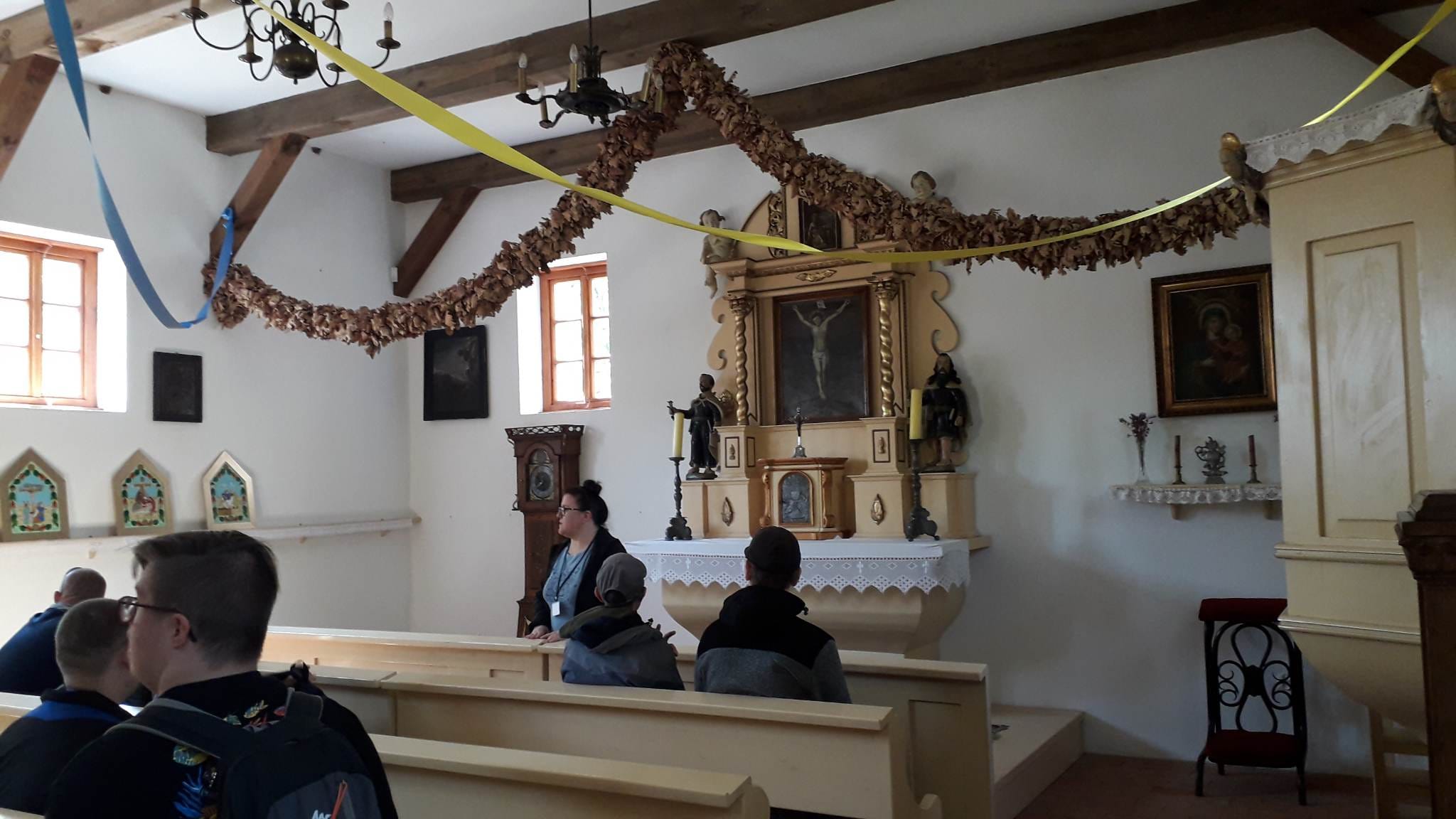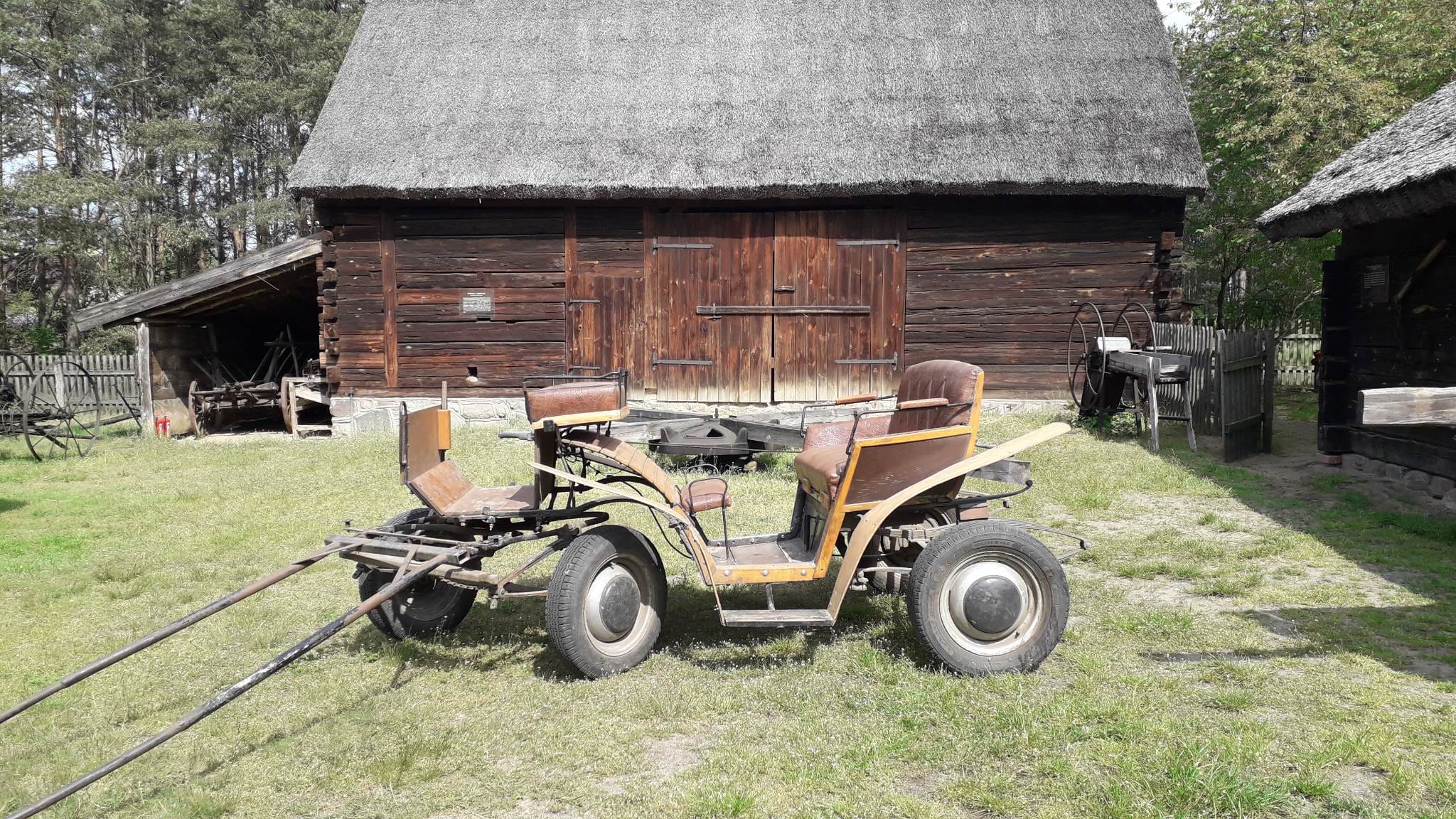 Mieliśmy także możliwość uczestniczenia w pokazie wyrobu włókien lnianych. Zaprezentowano nam narzędzia i sposób wytwarzania oraz wyczesywania włókien lnianych. Na zakończenie mogliśmy przejechać się bryczką wokół wsi na terenie skansenu oraz zakupić pamiątki.