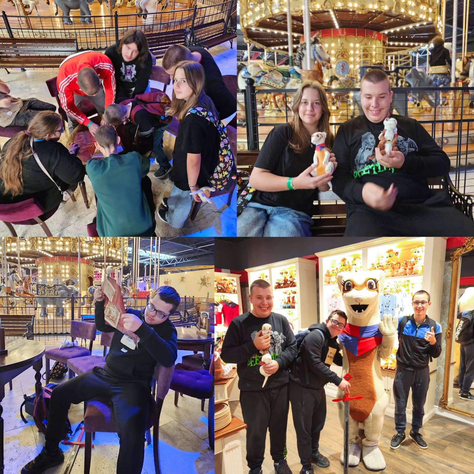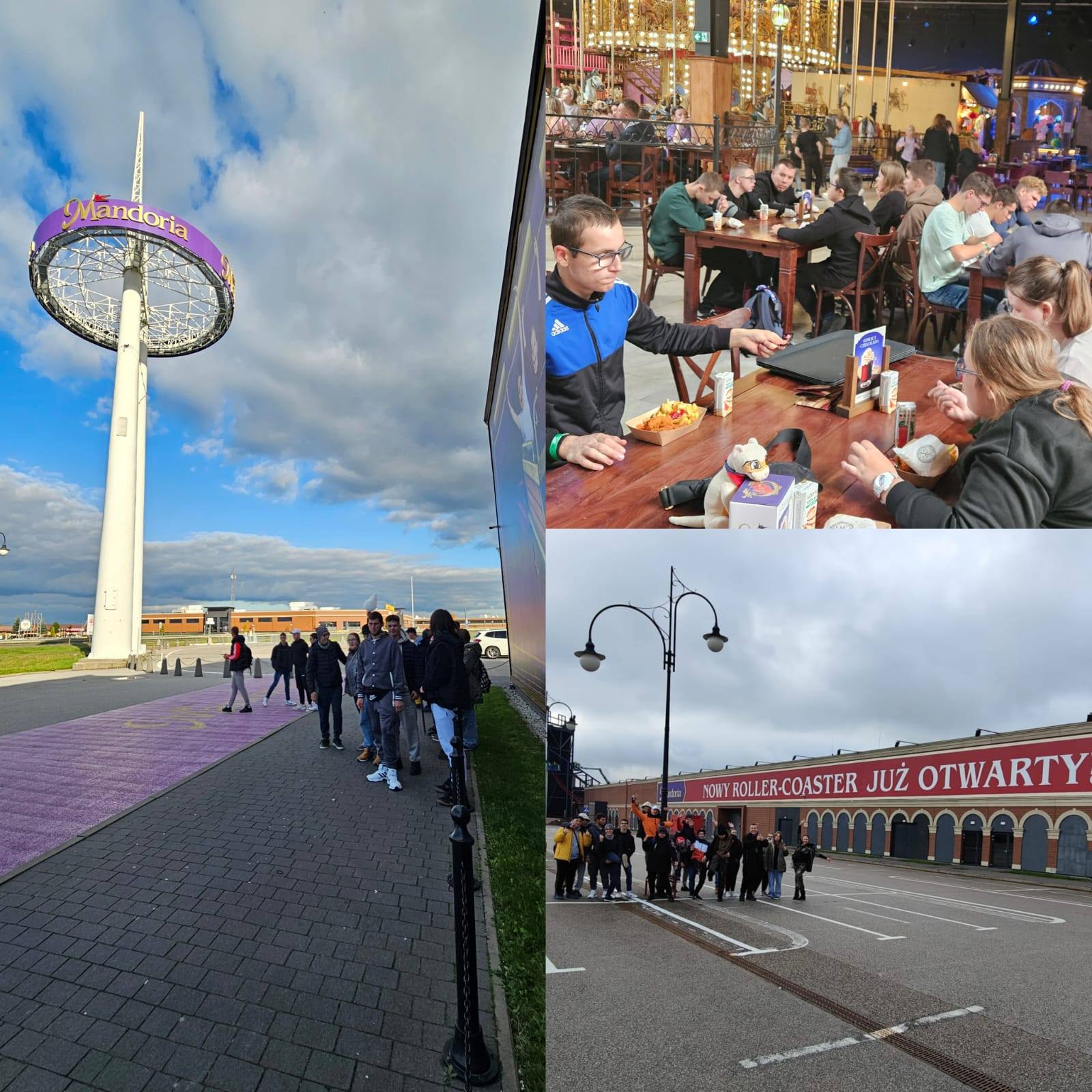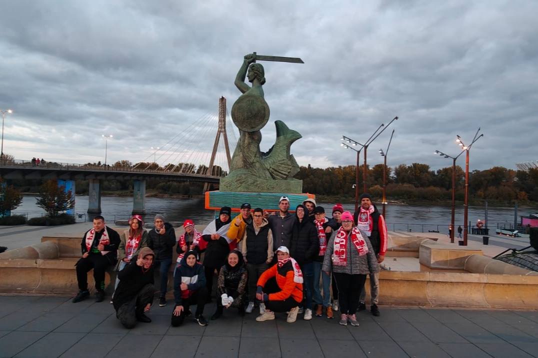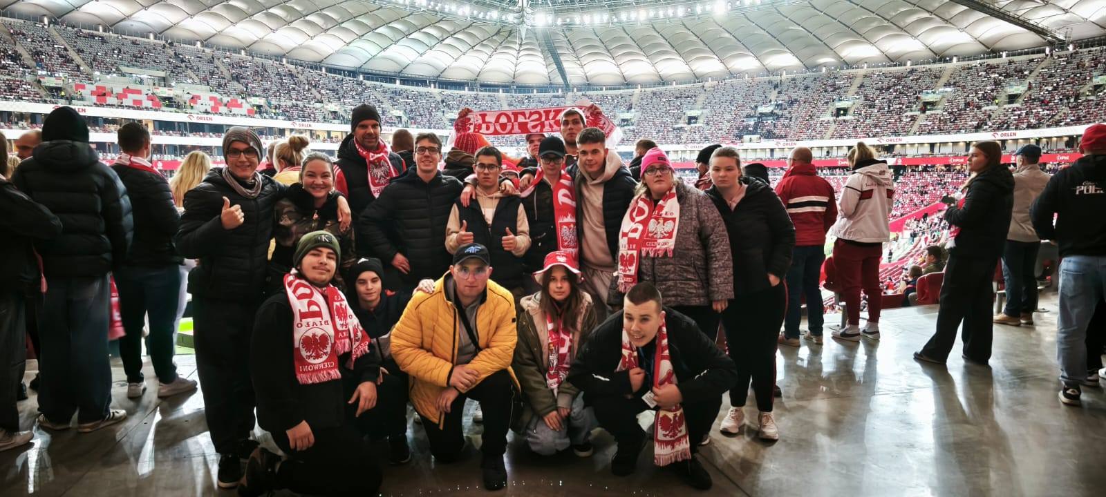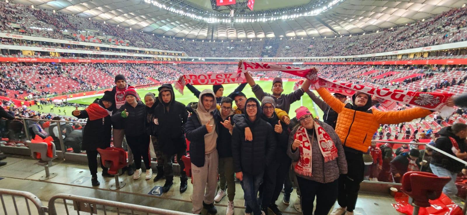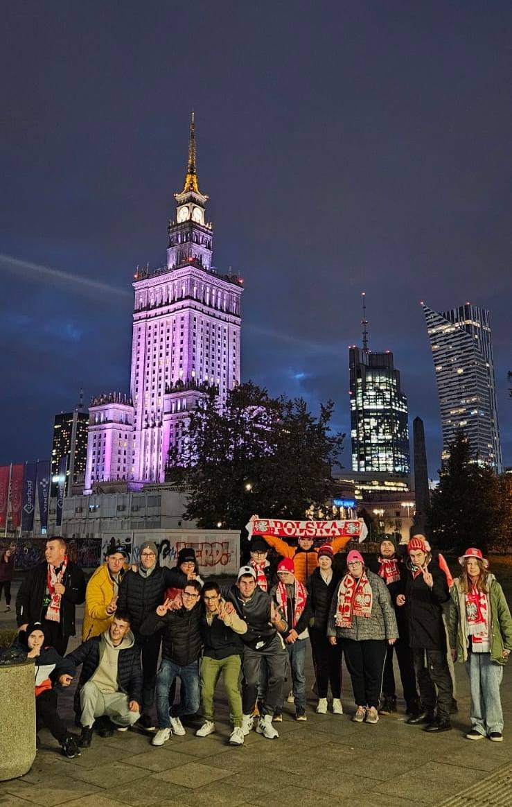 Spełniając kolejne marzenia niektórych z naszych uczniów postanowiliśmy tym razem jeszcze aktywniej wykorzystać podróż do Warszawy i po drodze zatrzymaliśmy się na przystanku w Mandoria - Tematyczny Park Rozrywki - największym w Europie parku rozrywki pod dachem, znajdującym się w Rzgowie nieopodal Łodzi. Jego sceneria przeniosła nas do świata XVII-wiecznego, handlowego miasta pełnego tematycznych atrakcji. Uczniowie mogli dowolnie korzystać z różnorodnych rozrywek, takich jak: roller coastery, karuzele, labirynty, małpi gaj, interaktywne gry czy tory przeszkód we wspaniały sposób łącząc zabawę z edukacją. Po wyczerpujących łamigłówkach fizyczno-intelektualnych wkomponowanych w krainę zadziwiających karuzel udaliśmy się na obiad i w szybkim tempie zregenerowaliśmy siły w autokarze w drodze do stolicy. W oczekiwaniu na główny punt naszej wycieczki – mecz reprezentacji🇵🇱 Polski z Chorwacją, nie bylibyśmy sobą, gdybyśmy nie skorzystali z nieograniczonego w tym dniu dostępu do komunikacji miejskiej. Dzięki doświadczeniu pana Bartka bez problemu dojechaliśmy do warszawskiej syreny i na fotkę z Pałacem Kultury w tle. Następnie około godziny 20:30 już grzaliśmy miejsca na trybunach PGE Narodowy , gdzie obie drużyny, pełne determinacji i zapału, dostarczyły nam niezapomnianych wrażeń. Atmosfera na stadionie była niesamowita, a trybuny aż kipiały od emocji, których dostarczyli piłkarze. Najpierw euforia pierwszego gola, potem zaraz zawód z powodu szybko straconych trzech bramek i ogromne zaskoczenie, że doprowadziliśmy do remisu. Ale dzielnie kibicowaliśmy Naszym do końca a nasza wytrwałość została nagrodzona zdobytym zdjęciem z autografem Jakuba Moderna.