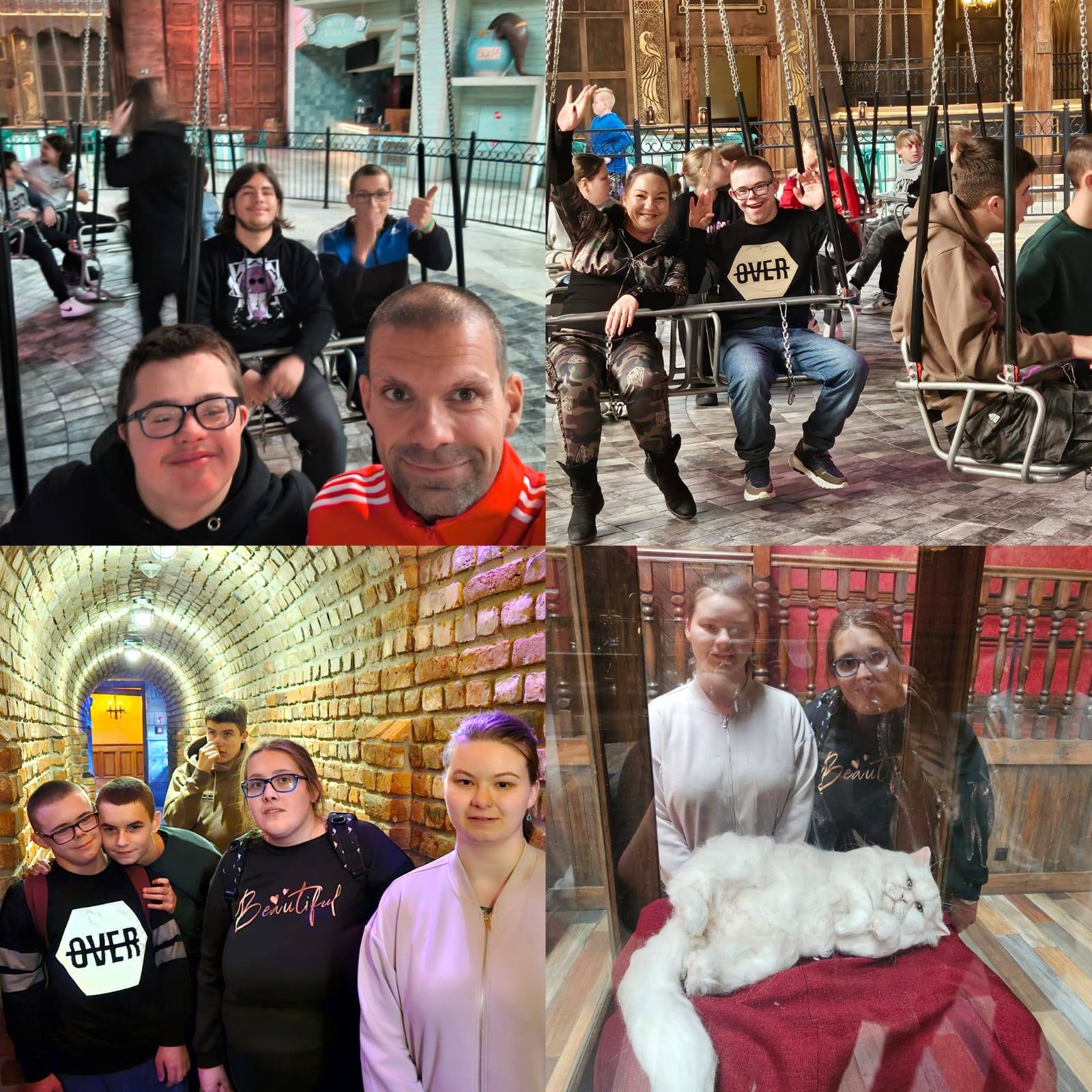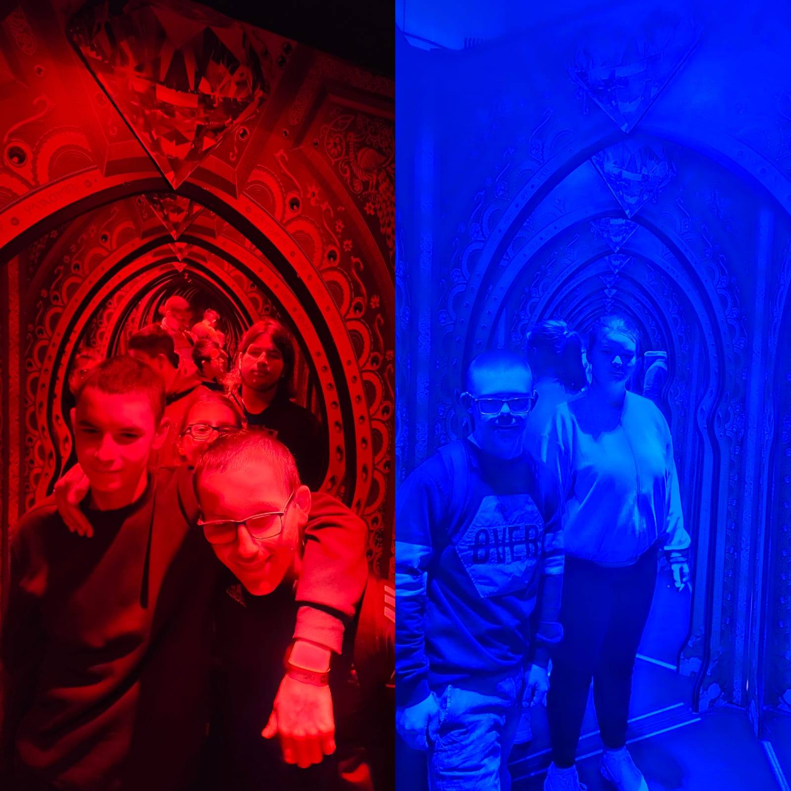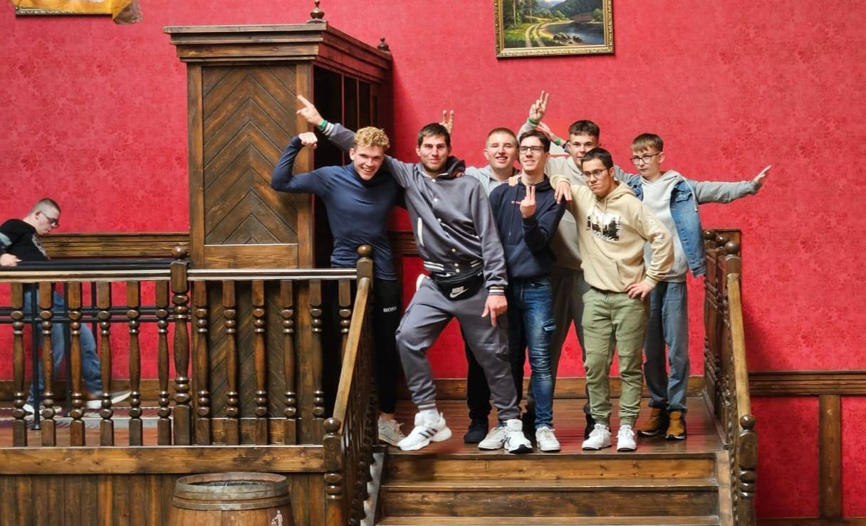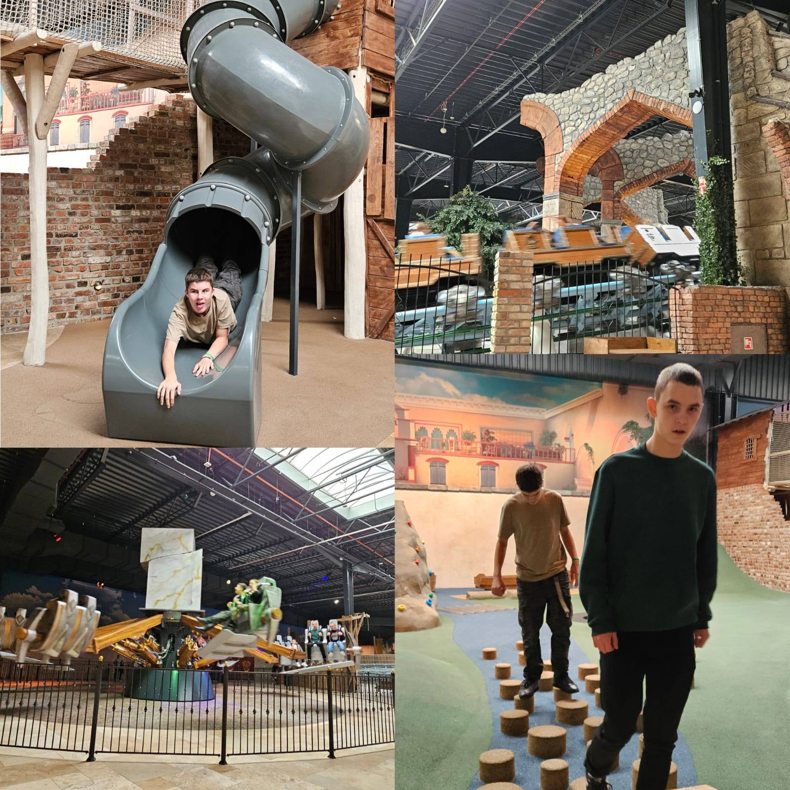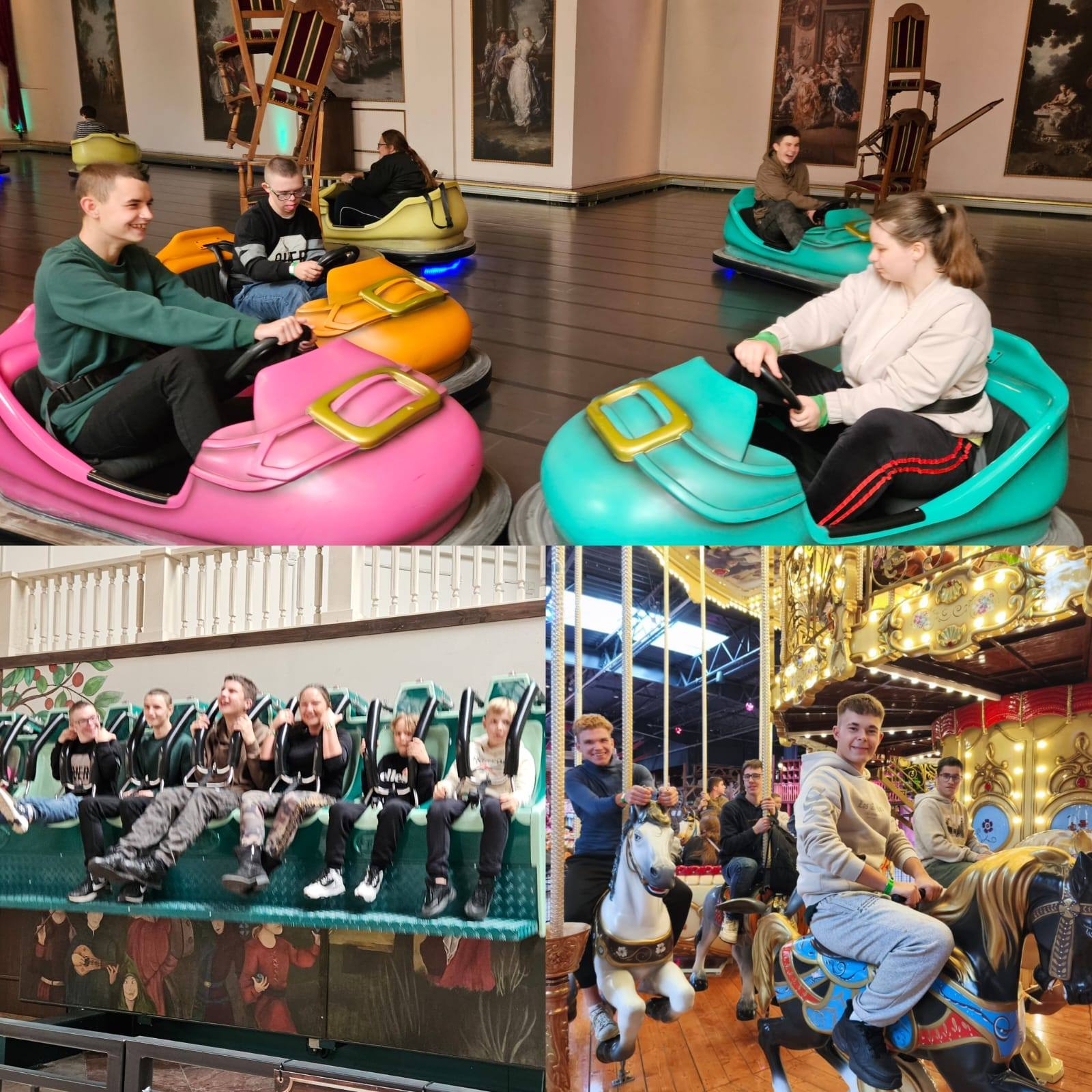 Spełniając kolejne marzenia niektórych z naszych uczniów postanowiliśmy tym razem jeszcze aktywniej wykorzystać podróż do Warszawy i po drodze zatrzymaliśmy się na przystanku w Mandoria - Tematyczny Park Rozrywki - największym w Europie parku rozrywki pod dachem, znajdującym się w Rzgowie nieopodal Łodzi. Jego sceneria przeniosła nas do świata XVII-wiecznego, handlowego miasta pełnego tematycznych atrakcji. Uczniowie mogli dowolnie korzystać z różnorodnych rozrywek, takich jak: roller coastery, karuzele, labirynty, małpi gaj, interaktywne gry czy tory przeszkód we wspaniały sposób łącząc zabawę z edukacją. Po wyczerpujących łamigłówkach fizyczno-intelektualnych wkomponowanych w krainę zadziwiających karuzel udaliśmy się na obiad i w szybkim tempie zregenerowaliśmy siły w autokarze w drodze do stolicy. W oczekiwaniu na główny punt naszej wycieczki – mecz reprezentacji🇵🇱 Polski z Chorwacją, nie bylibyśmy sobą, gdybyśmy nie skorzystali z nieograniczonego w tym dniu dostępu do komunikacji miejskiej. Dzięki doświadczeniu pana Bartka bez problemu dojechaliśmy do warszawskiej syreny i na fotkę z Pałacem Kultury w tle. Następnie około godziny 20:30 już grzaliśmy miejsca na trybunach PGE Narodowy , gdzie obie drużyny, pełne determinacji i zapału, dostarczyły nam niezapomnianych wrażeń. Atmosfera na stadionie była niesamowita, a trybuny aż kipiały od emocji, których dostarczyli piłkarze. Najpierw euforia pierwszego gola, potem zaraz zawód z powodu szybko straconych trzech bramek i ogromne zaskoczenie, że doprowadziliśmy do remisu. Ale dzielnie kibicowaliśmy Naszym do końca a nasza wytrwałość została nagrodzona zdobytym zdjęciem z autografem Jakuba Moderna.
