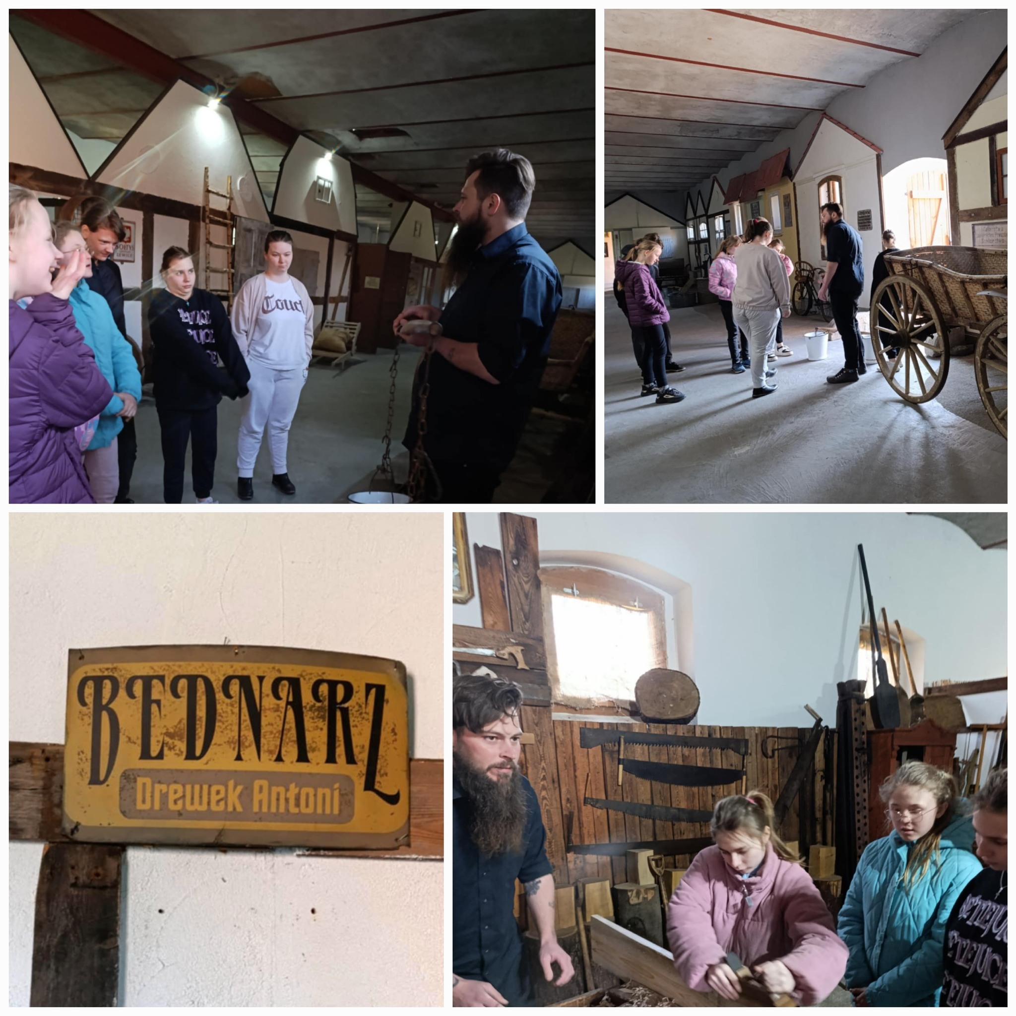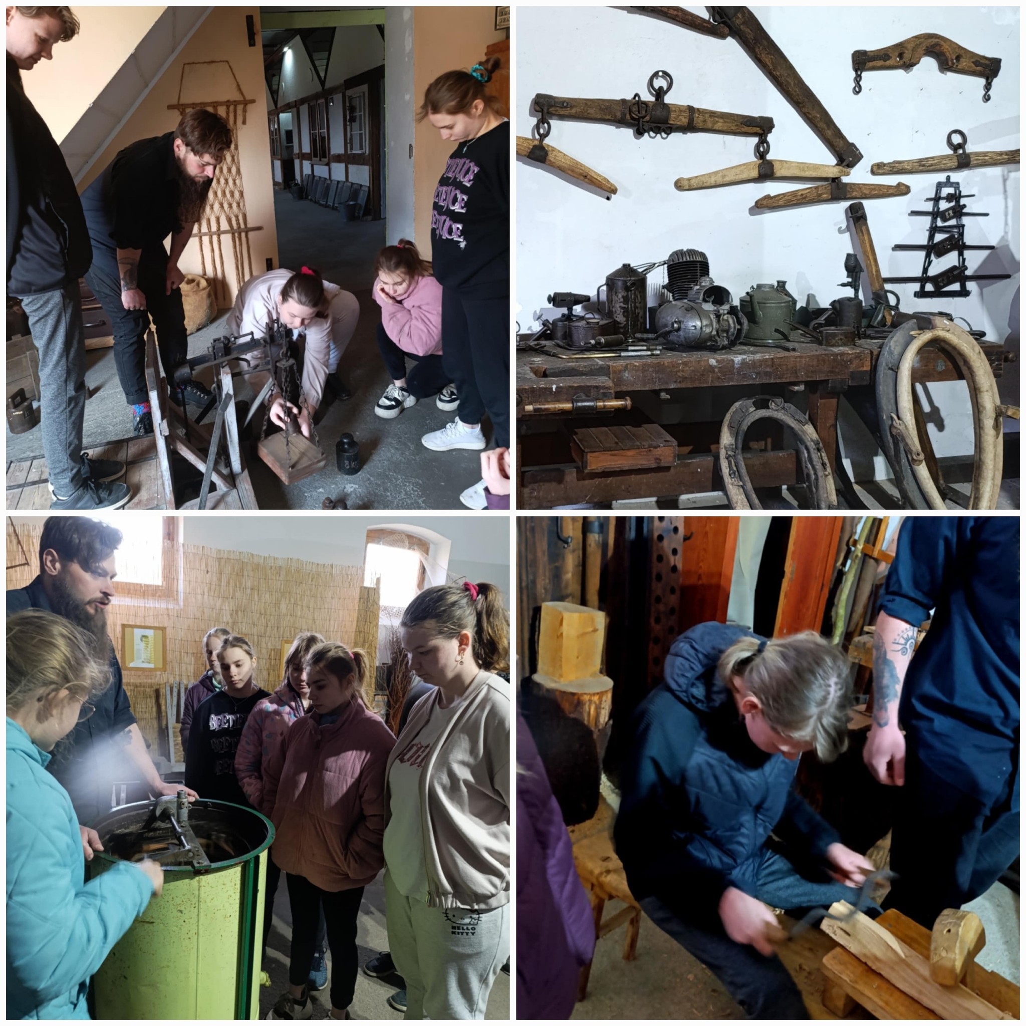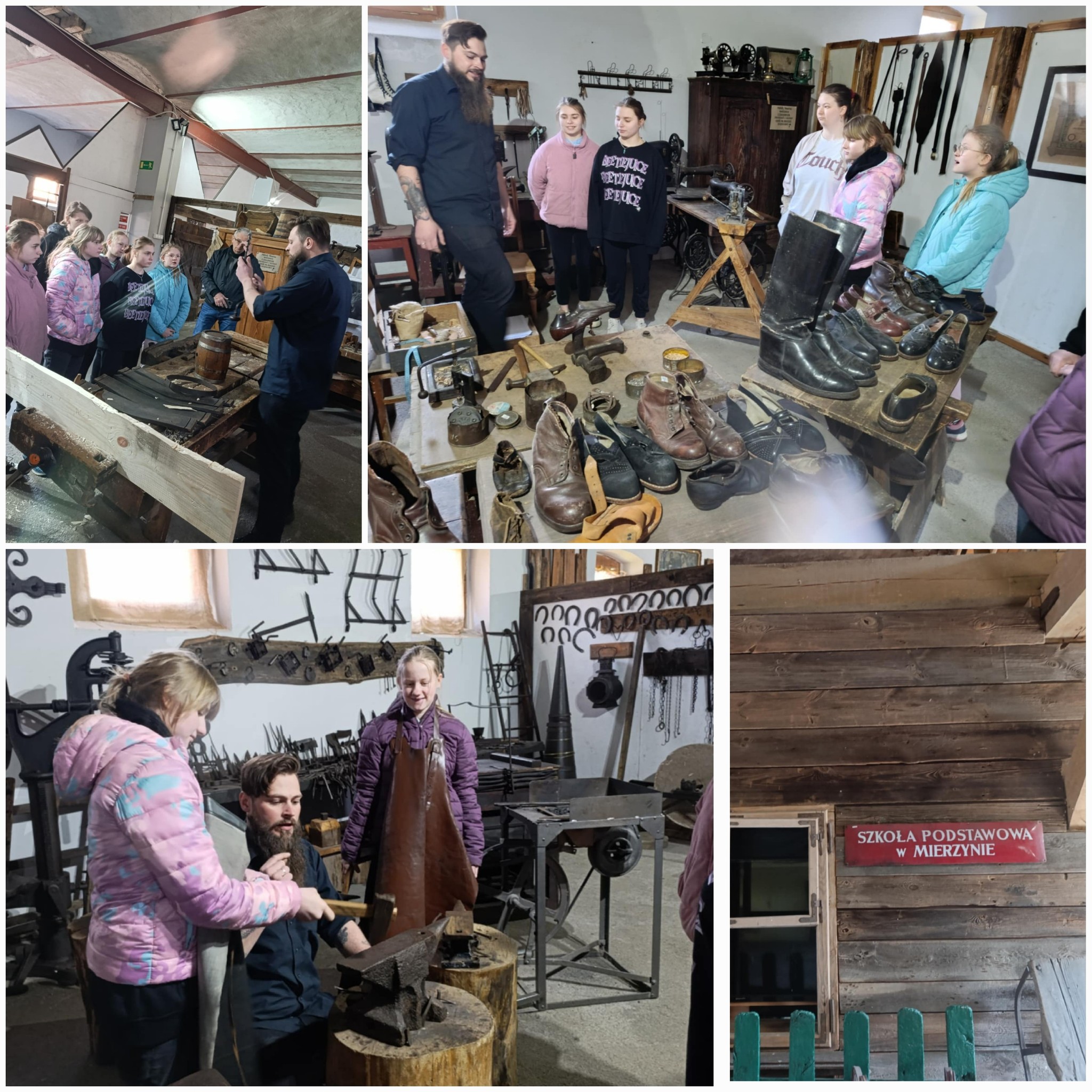 Klasa V wraz z opiekunami udała się na wycieczkę szkolną do Centrum Edukacji Regionalnej i Przyrodniczej w Mniszkach. Podczas zwiedzania skansenu pan przewodnik opowiadał nam o ginących zawodach. Odwiedziliśmy kowala, szewca, pszczelarza, praczkę, sprzedawcę i sklep kolonialny. Wzięliśmy też udział w warsztatach, podczas których wykonaliśmy świeczkę z wosku pszczelego oraz wózek drabiniasty z wikliny. Z pewnością nasze wytwory pięknie będą zdobiły nasze stoły podczas zbliżających się Świąt Wielkanocnych. Czas minął nam bardzo miło, szybko i twórczo. Dla wszystkich uczestników wycieczki była to bardzo przyjemna i wyjątkowa lekcja historii.