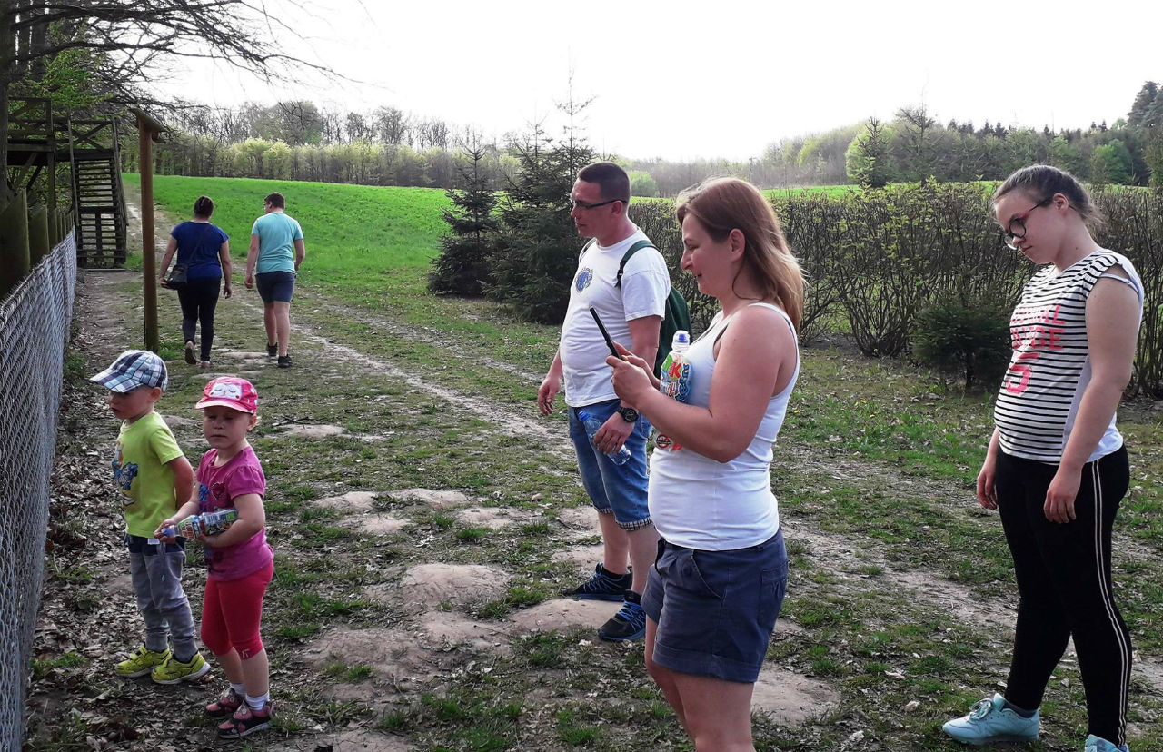 Cieszyliśmy się piękną pogodą i rozwijającą się zielenią. W zagrodzie dziczej dzieci mogły obserwować igraszki małych dzików - warchlaków oraz przypomniały sobie wiersz Jana Brzechwy „Dzik jest dziki, dzik jest zły...." Po powrocie czekał na nas pan inż. Michał Standio - pracownik Nadleśnictwa Krucz, który oprowadził nas po nowoczesnym Centrum Promocji Lasów Państwowych. W Sali Wystawy Historycznej poznaliśmy historię Lasów Państwowych oraz rodziny Hochbergów – założycieli zamku w Goraju. Mogliśmy też przyjrzeć się multimedialnej mapie Polski z podświetlonymi parkami narodowymi, pasmami i szczytami górskimi, oraz jeziorami i rzekami. W Sali Wystawy Przyrodniczej podziwialiśmy dioramy, oparte o cykle rozwojowe lasu i pory roku. Przemyślana aranżacja sali, wykorzystanie światła i dźwięków zaczerpniętych wprost ze środowiska naturalnego sprawiła, że znowu poczuliśmy się, jak na leśnym szlaku.