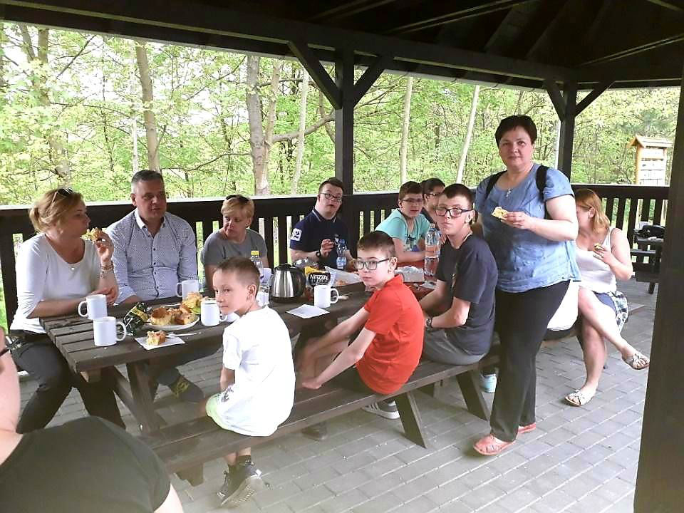 Rajd zakończyliśmy krótką biesiadą w myśliwskiej wiacie, kosztując dobrej kawy i herbaty oraz pysznych rogalików. Oczywiście nie zabrakło wody zgodnie z zasadami zdrowego odżywiania