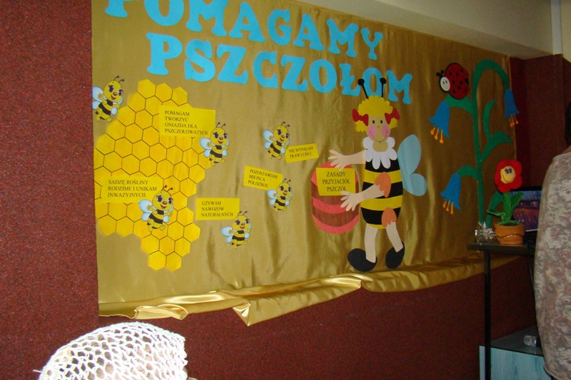 W ramach lekcji przyrody w klasach IV i V zrealizowano następujące zadania: wykonano plakaty na temat: ?Pszczoła nie jedno ma imię?. Zapoznano się z budową pszczół i życiem w ich naturalnym środowisku. Uczniowie opracowali Honorowy Kodeks Przyjaciół Pszczół, który umieścili na klasowej gazetce. W szkolnym ogródku powiesili domki dla owadów, które wcześniej wykonali.