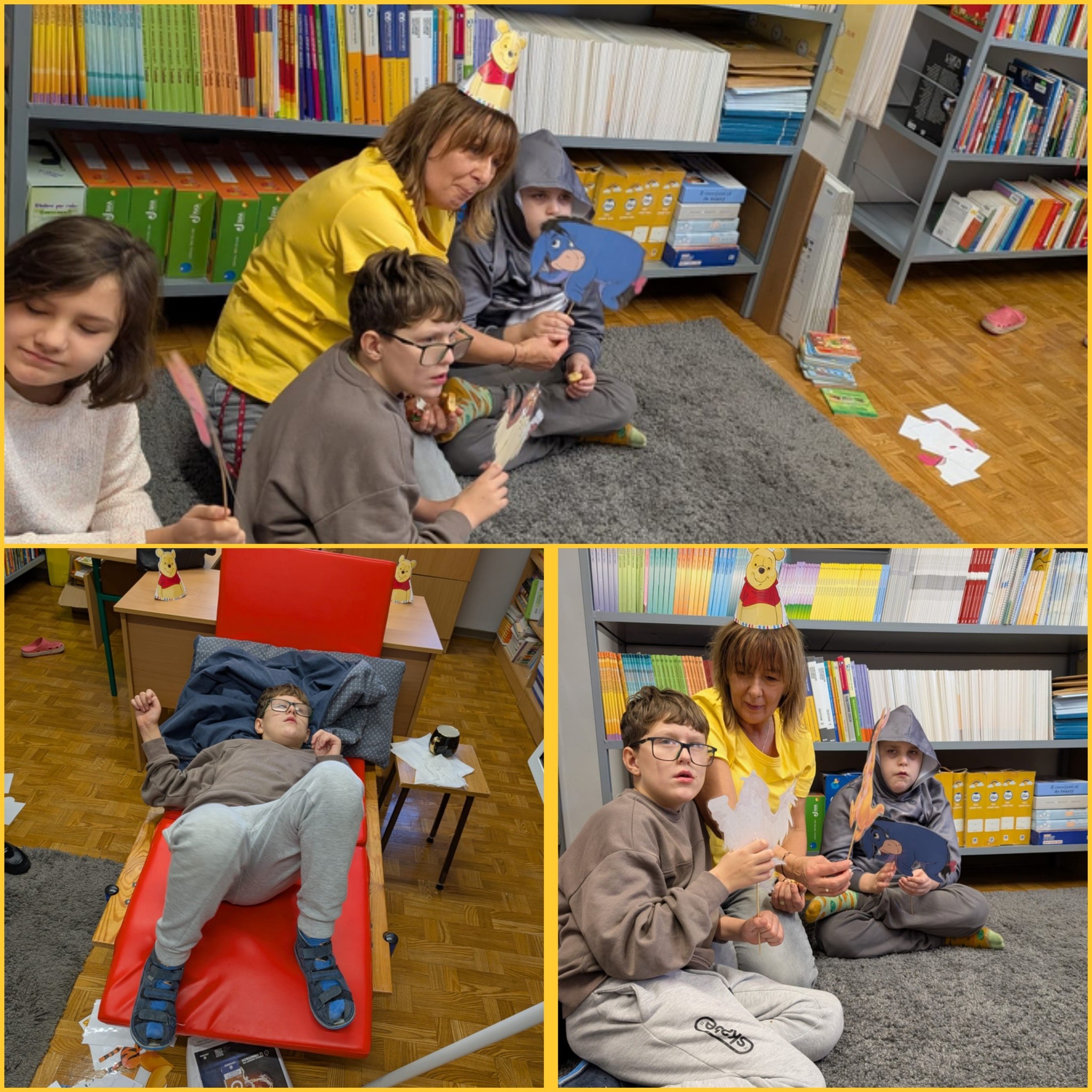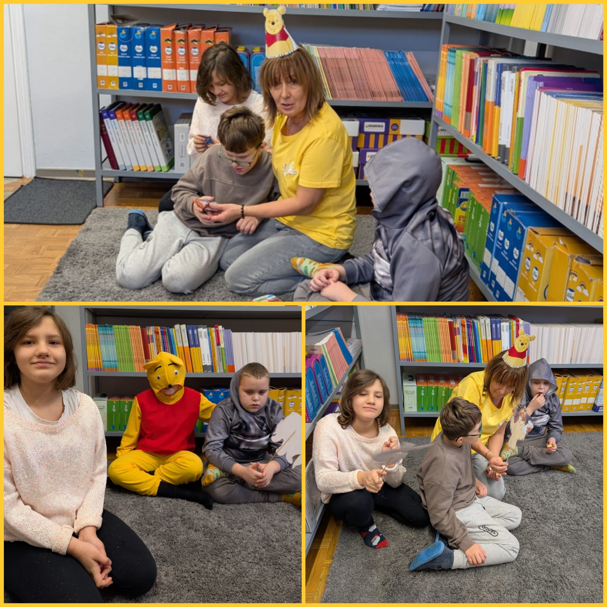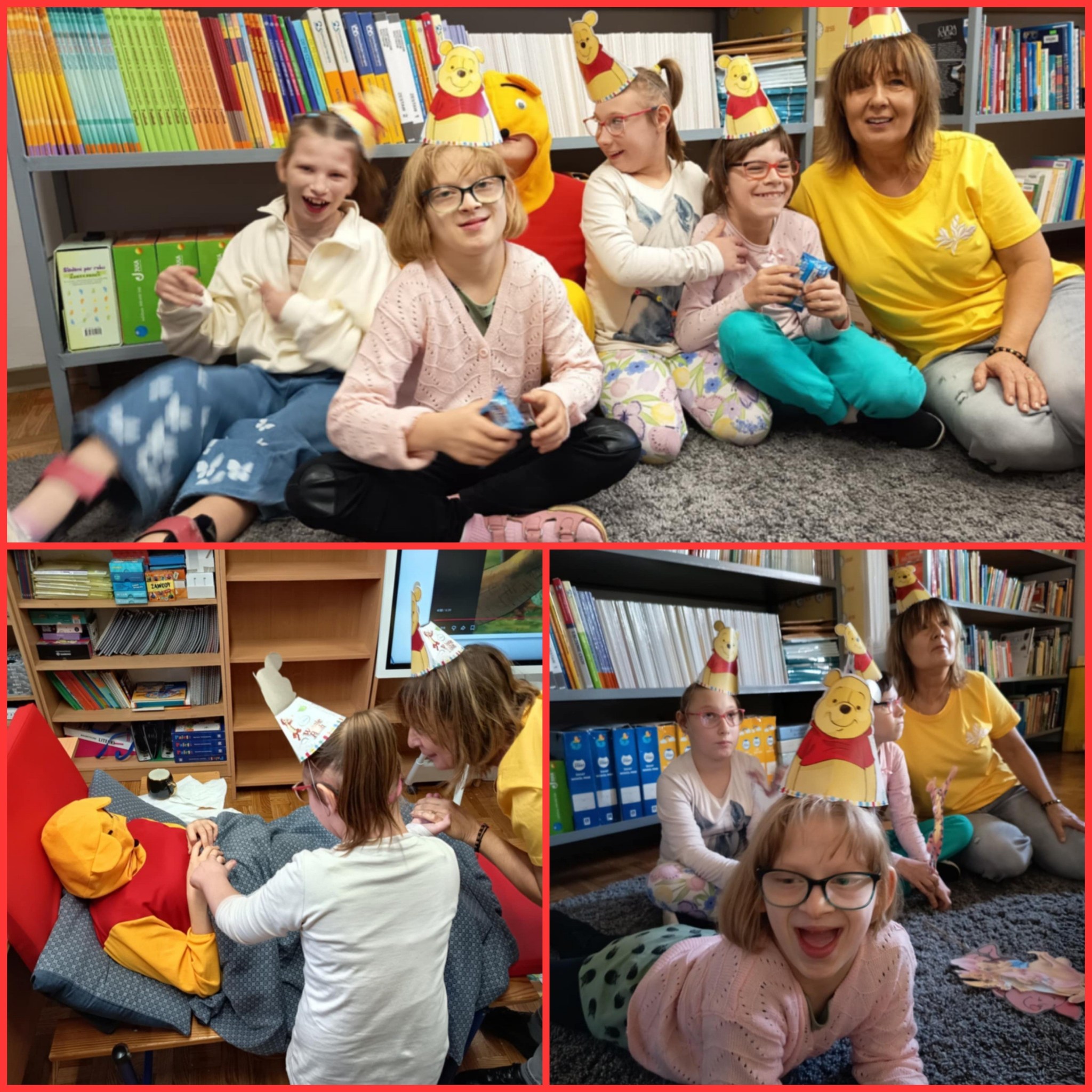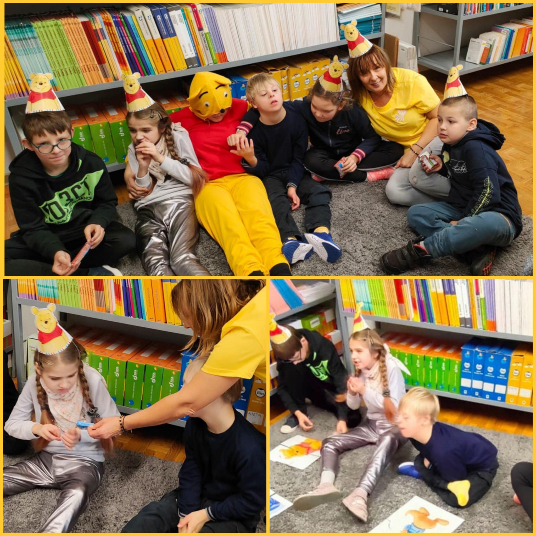 Przyjaźnie w ,,Kubusiu Puchatku" to ważny wątek wielu opowiadań.... Wartość przyjaźni udowadniali dzisiaj najmłodsi uczniowie naszej szkoły, którzy podczas DNIA POSTACI Z BAJEK opiekowali się chorym Puchatkiem.