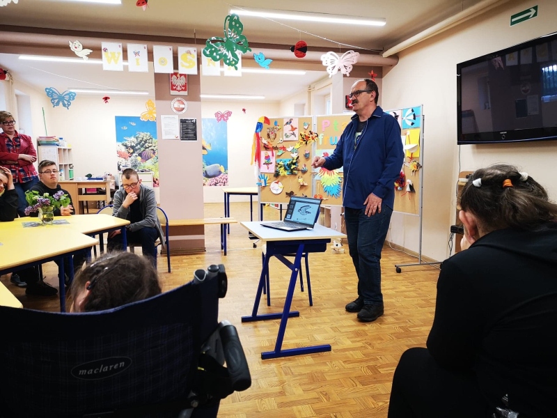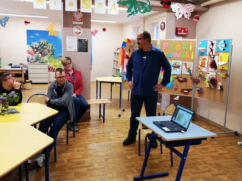 12 maja 2022r. w świetlicy szkolnej odbyło się spotkanie z miłośnikiem przyrody, krzewicielem ptasiarstwa oraz autorem książek o ptakach panem Markiem Pióro. W spotkaniu uczestniczyli uczniowie Szkoły Przysposabiającej do Pracy, którzy z zainteresowaniem przysłuchiwali się opowieściom na temat, intersujących przedstawicieli poszczególnych gatunków ptactwa żyjącego w naszym kraju. Profesjonalna ale także intrygująca pogadanka wzbogacona została zaskakującymi anegdotami i legendami związanymi z naszymi ptasimi bohaterami. Tematyczny wykład zobrazowany został rycinami pani Justyny Kierat. Świat ptaków jest zdumiewający kiedy zajrzy się do niego głębiej. Dzięki panu Markowi mogliśmy chociaż przez chwilę „poszybować” nad Polską Krainą i zapoznać się z wieloma ptasimi rodzinami. Dziękujemy serdecznie panu Markowi za przybycie do naszej szkoły i wzbogacenie naszej wiedzy oraz świadomości przyrodniczej na temat tak dostojnych, pięknych i mądrych stworzeń.