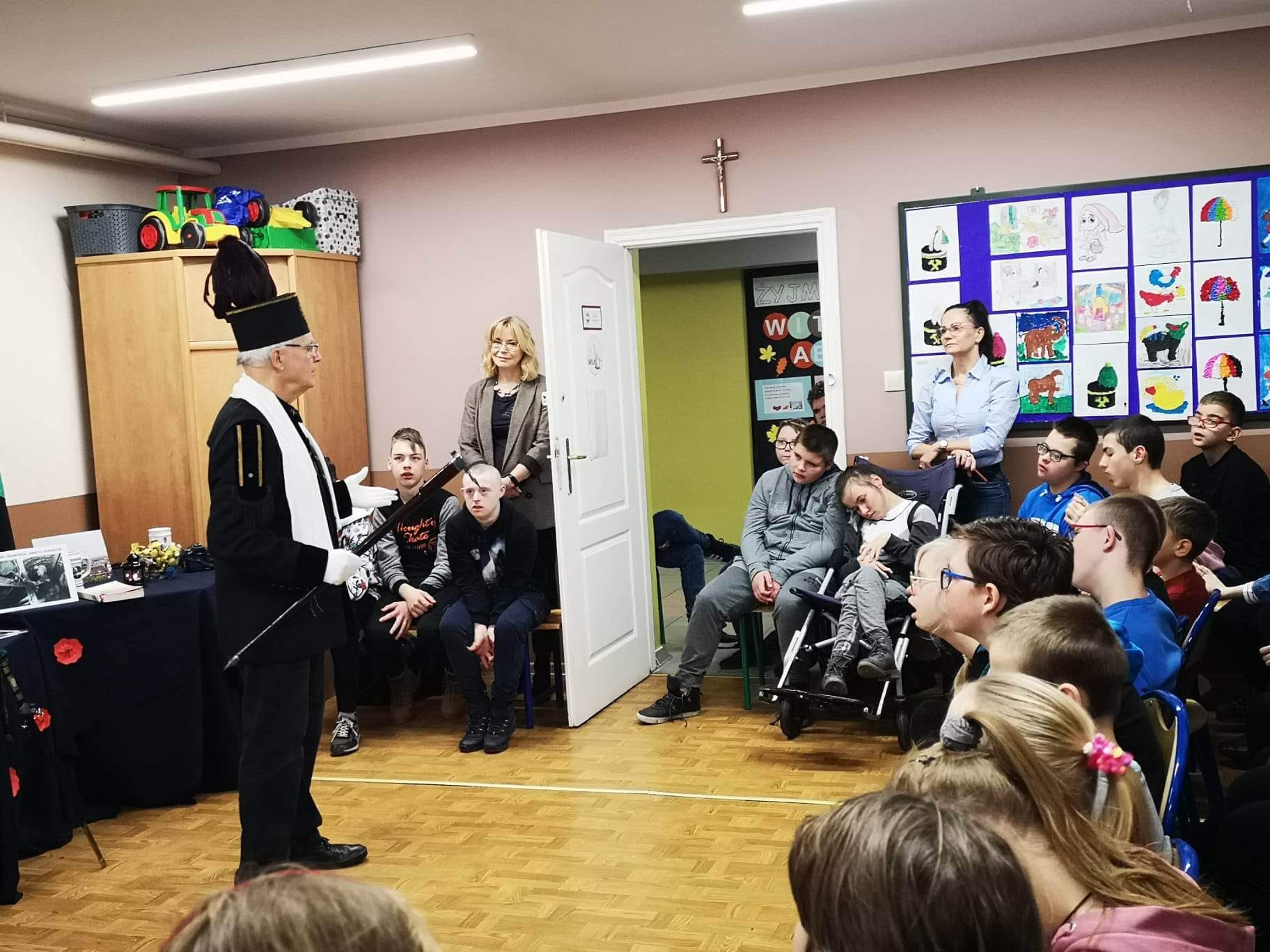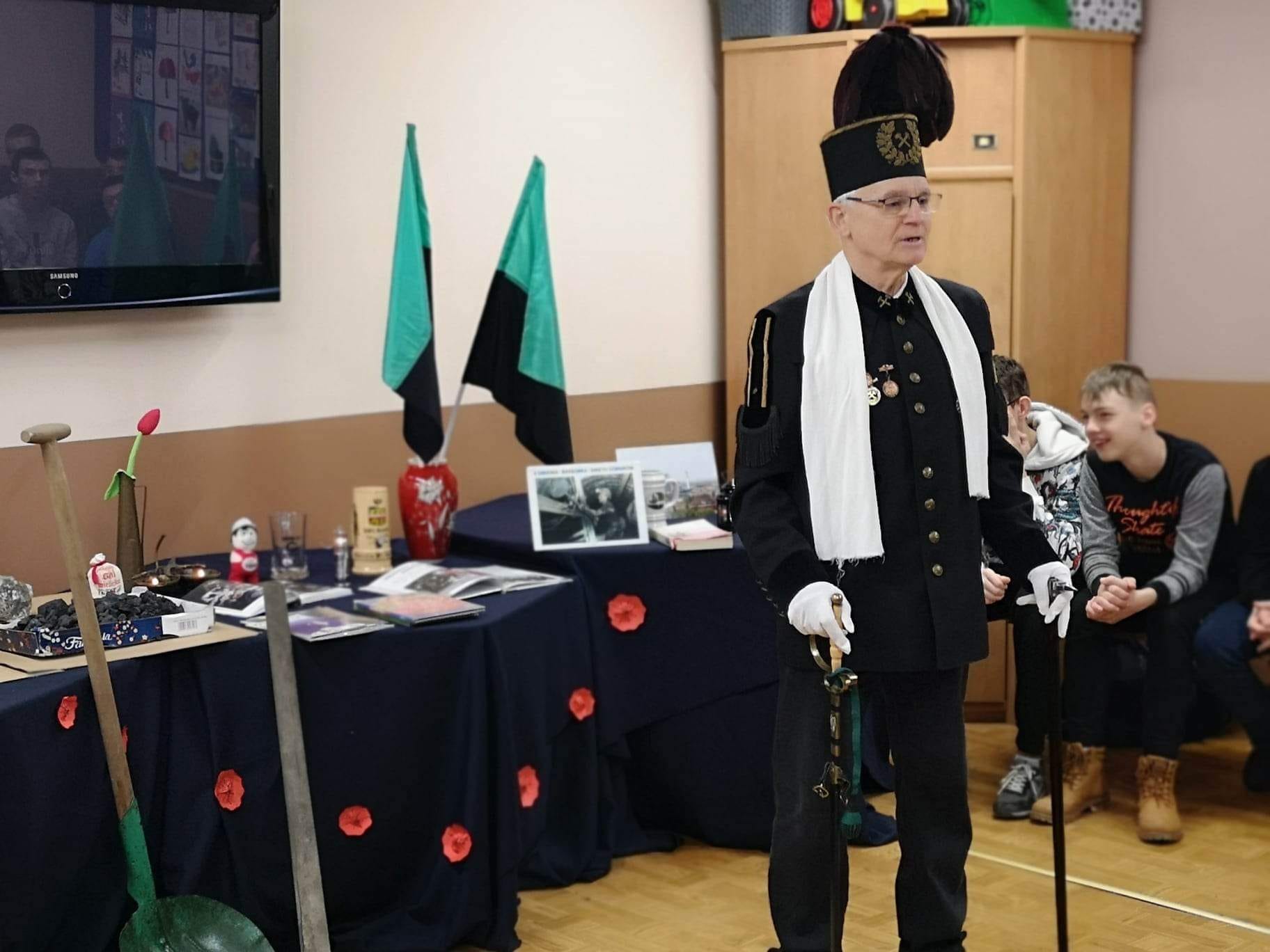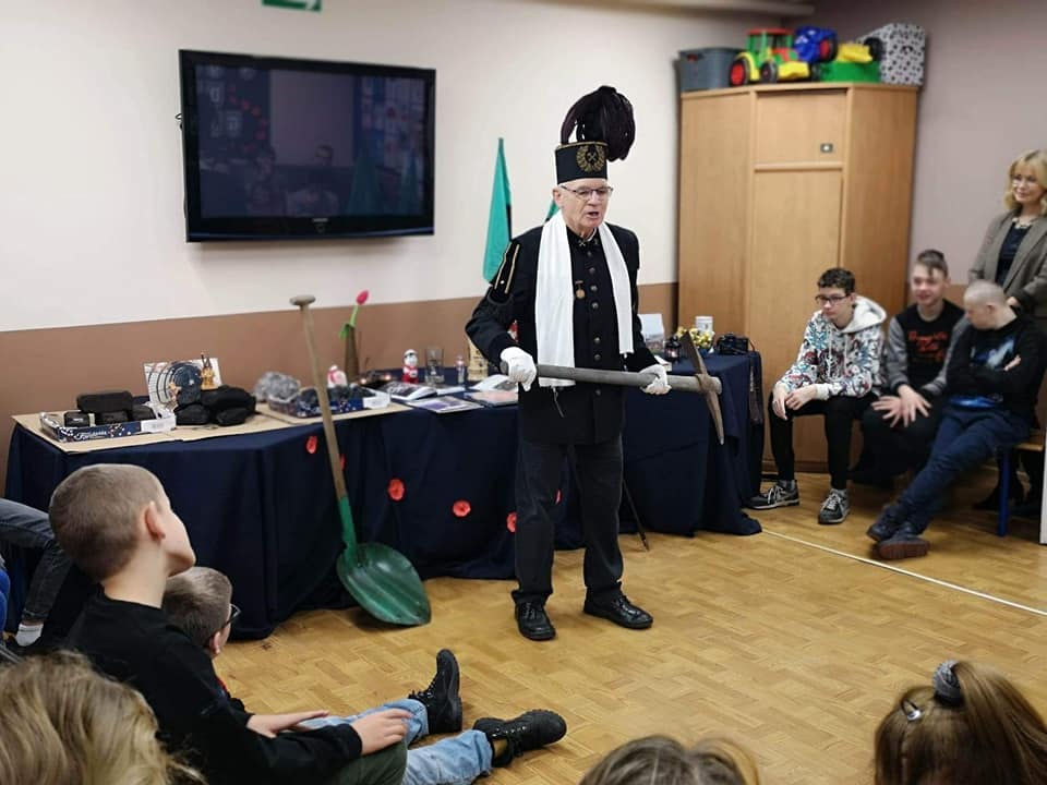 W związku ze zbliżającym się świętem Górnika w naszej szkole odbył się Poranek Barbórkowy. Nasz gość, pan Andrzej Piechota, ubrany w oryginalny mundur górnika, opowiadał o ciężkiej i niebezpiecznej pracy wykonywanej pod ziemią. Przybliżył uczniom wszystkie skarby, jakie kryje ziemia, a niektóre z nich mogli obejrzeć i dotknąć. Uczniowie mieli również okazję przyjrzeć się z bliska czapce górniczej, szpadzie, odznaczeniom, kilofowi i latarce górnika. Mieli też możliwość policzyć guziki przy mundurze naszego gościa. Pan Andrzej wyjaśnił nam znaczenie różnych kolorów pióropuszy na czapce. Spotkanie bardzo wszystkim się podobało i wzbudziło duże zainteresowanie wśród uczniów. Kto wie, może kiedyś ktoś zostanie górnikiem....